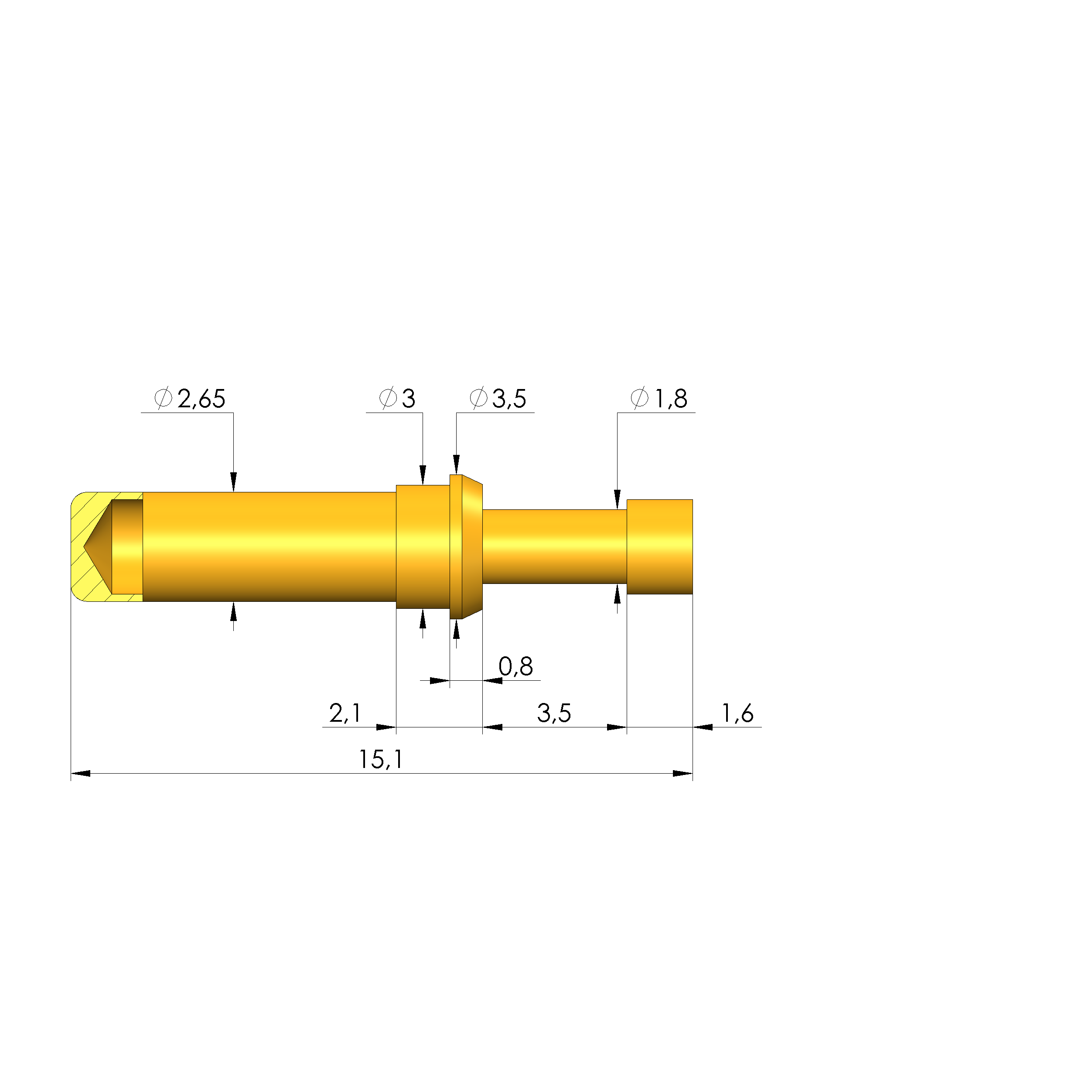 - Gesamtlänge: 15,1 mm
