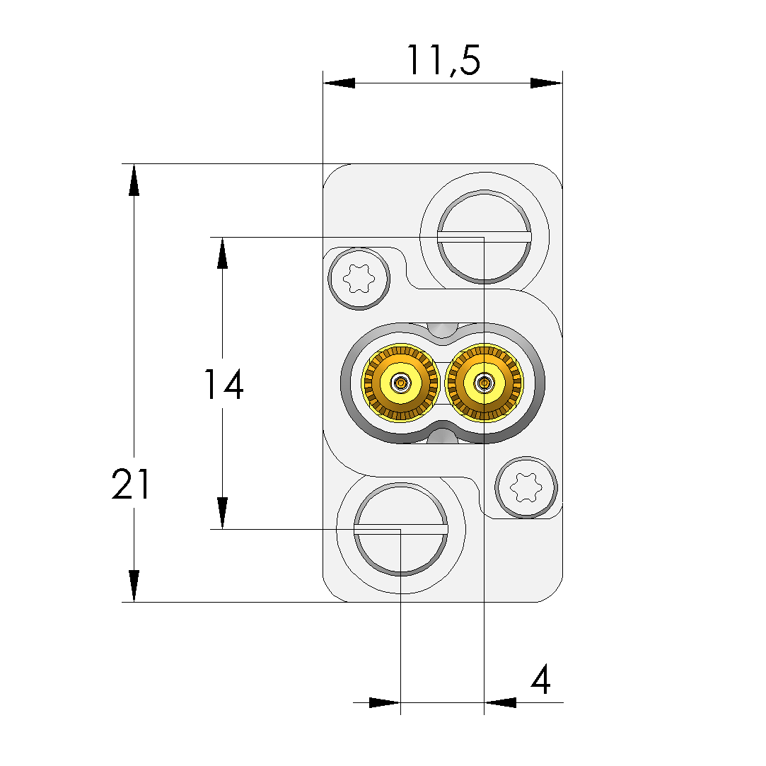 - Schwimmende Aufnahme für HFS-807 mini-FAKRA Hochfrequenz-Kontaktstifte mit Zentrierbereich: ± 0,6 mm Winkelversatz: ± 2°