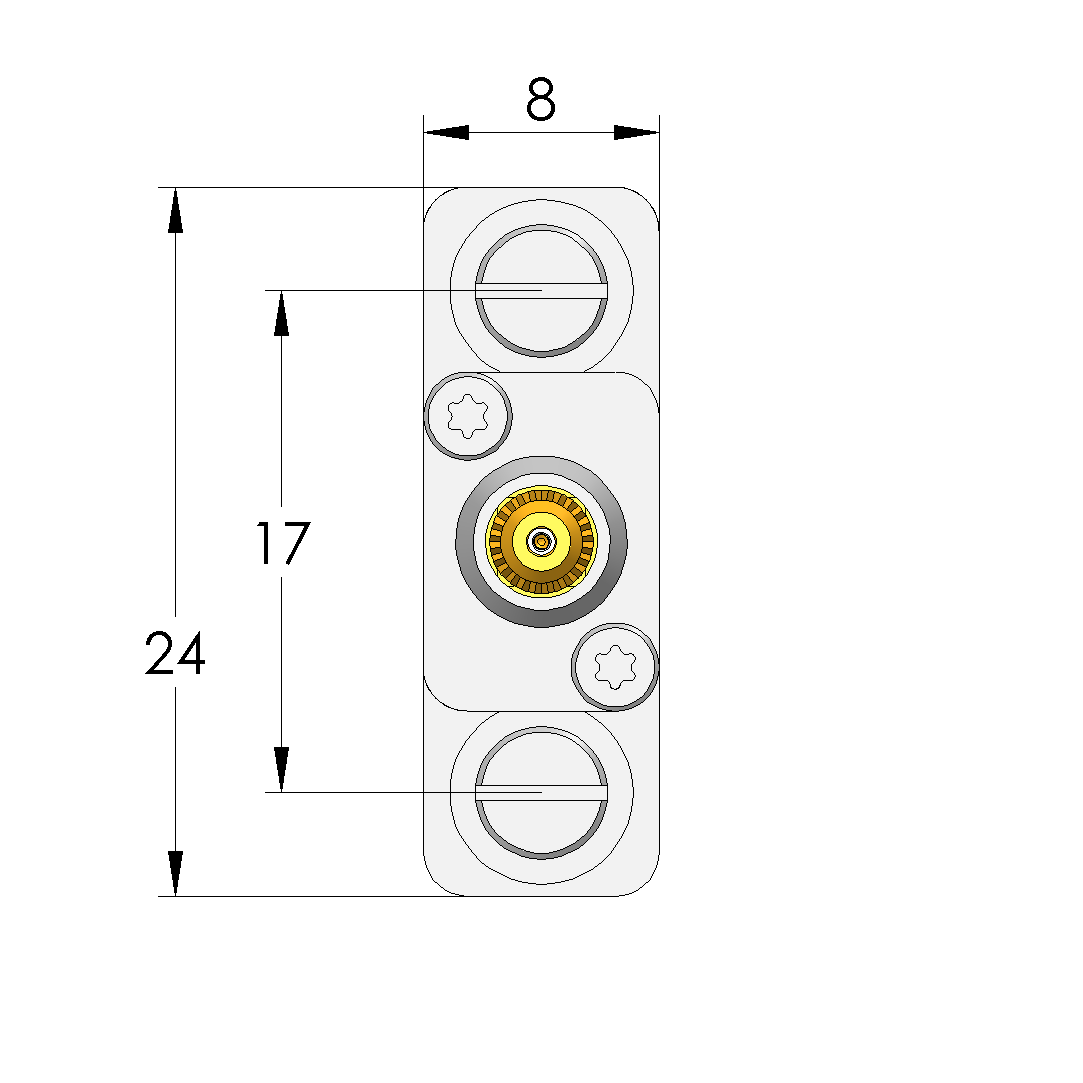 - Schwimmende Aufnahme für HFS-807 mini-FAKRA Hochfrequenz-Kontaktstifte mit Zentrierbereich: ± 0,6 mm Winkelversatz: ± 2°