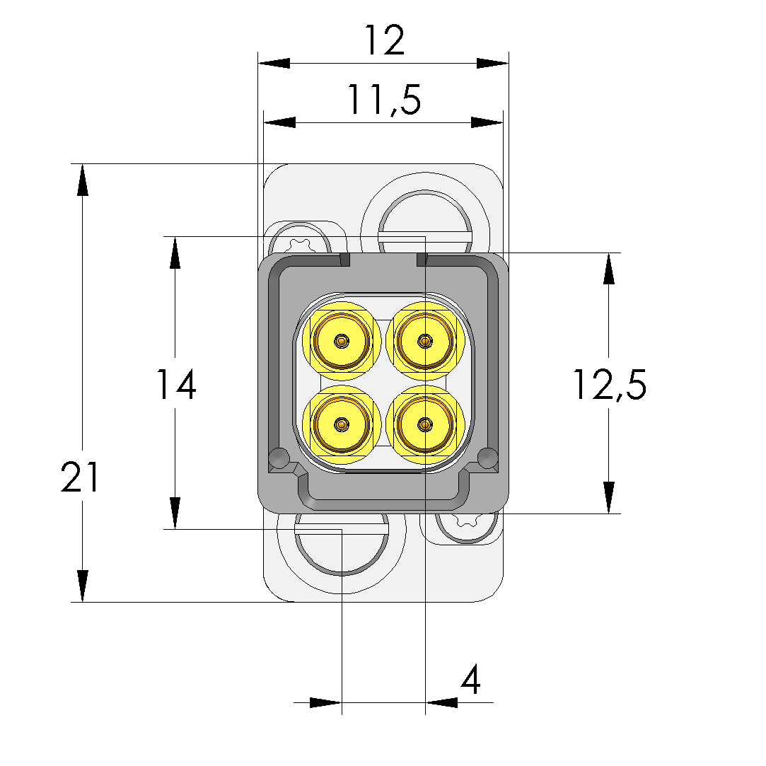 - Schwimmende Aufnahme für HFS-807 mini-FAKRA Hochfrequenz-Kontaktstifte mit Zentrierbereich: ± 0,6 mm Winkelversatz: ± 2°
