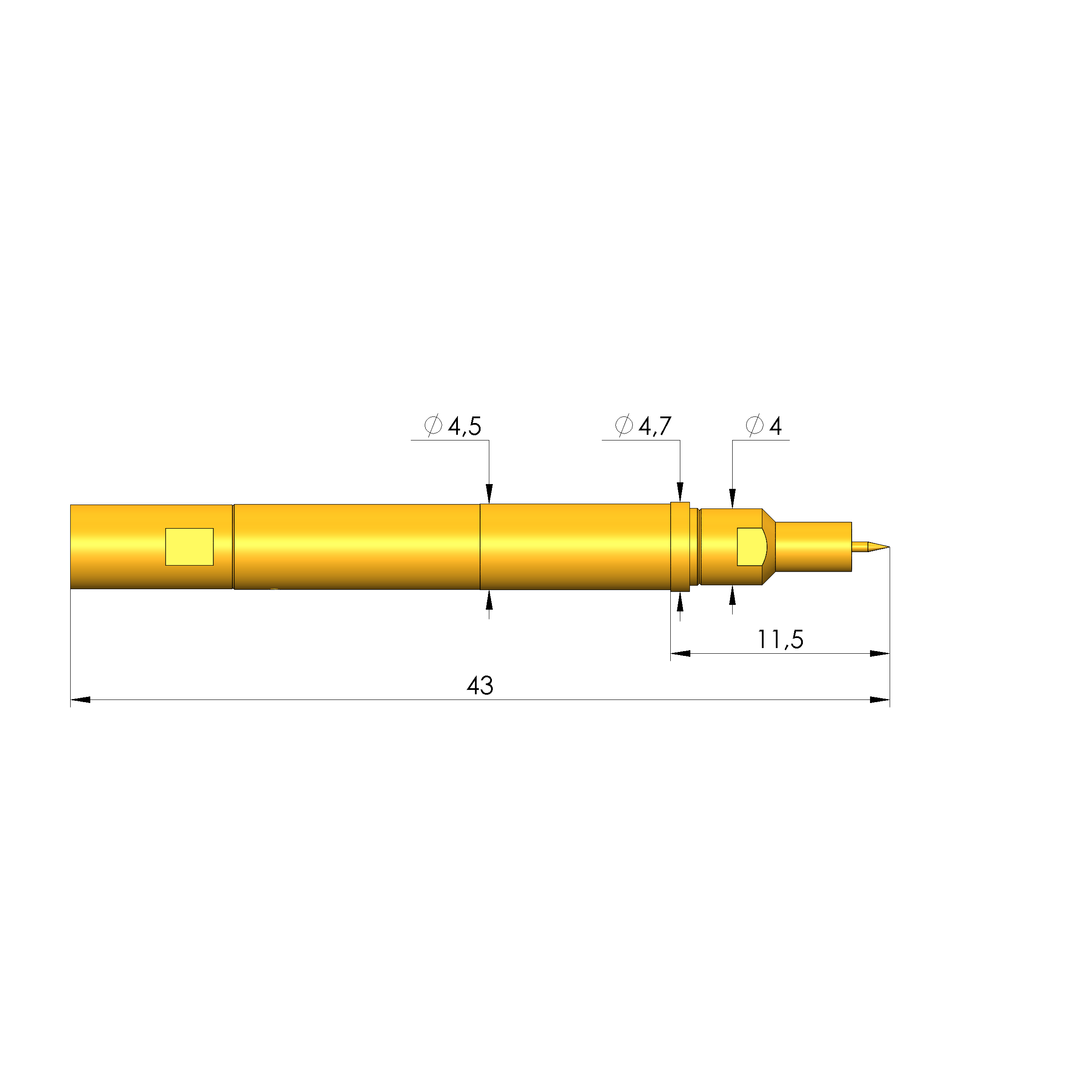 - Gesamtlänge: 43 mm
