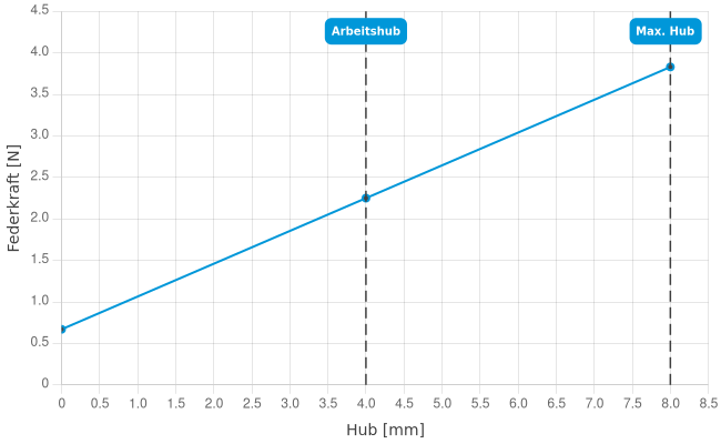 | Federkraft bei Arbeitshub: | 2,25 N |