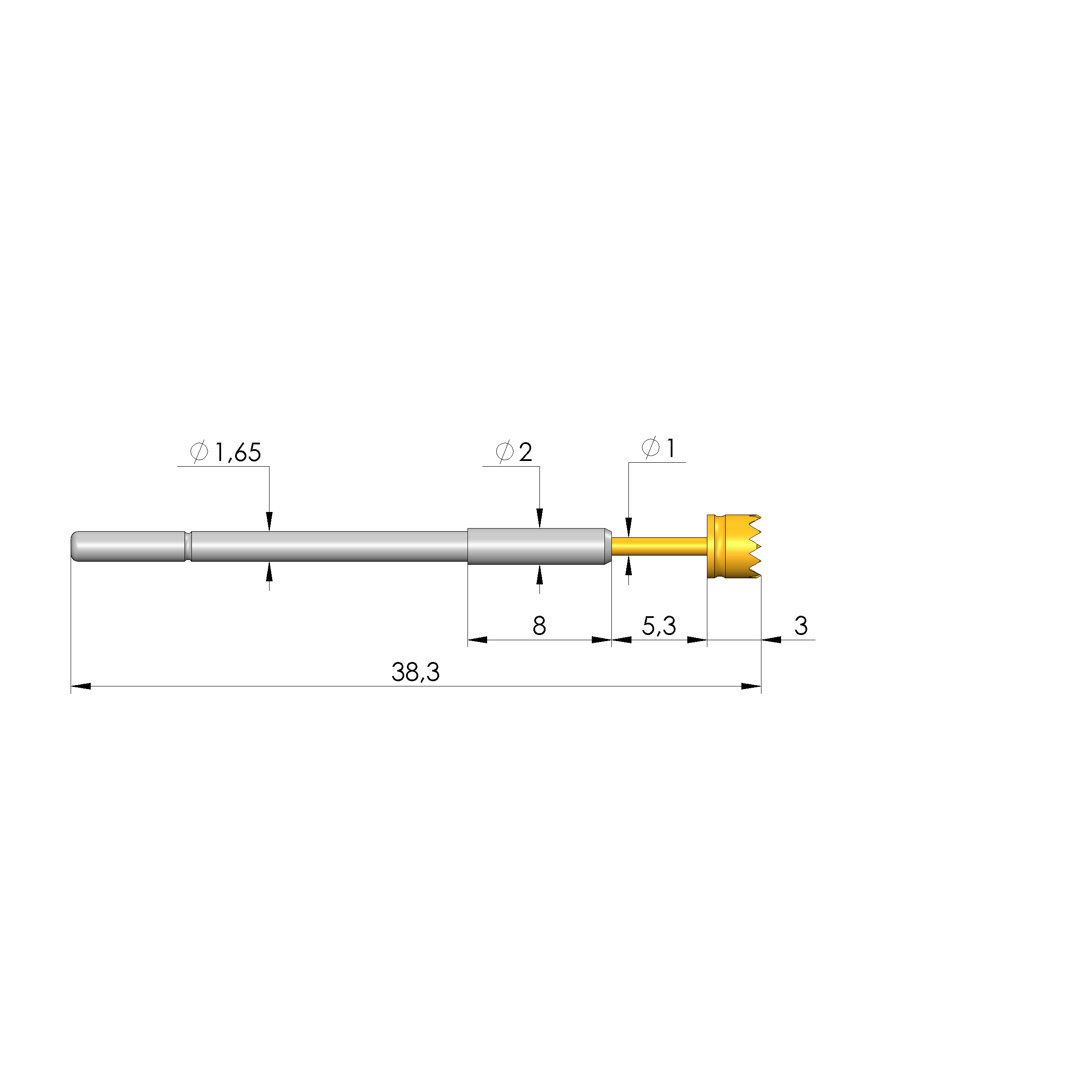 - Gesamtlänge: 38,3 mm