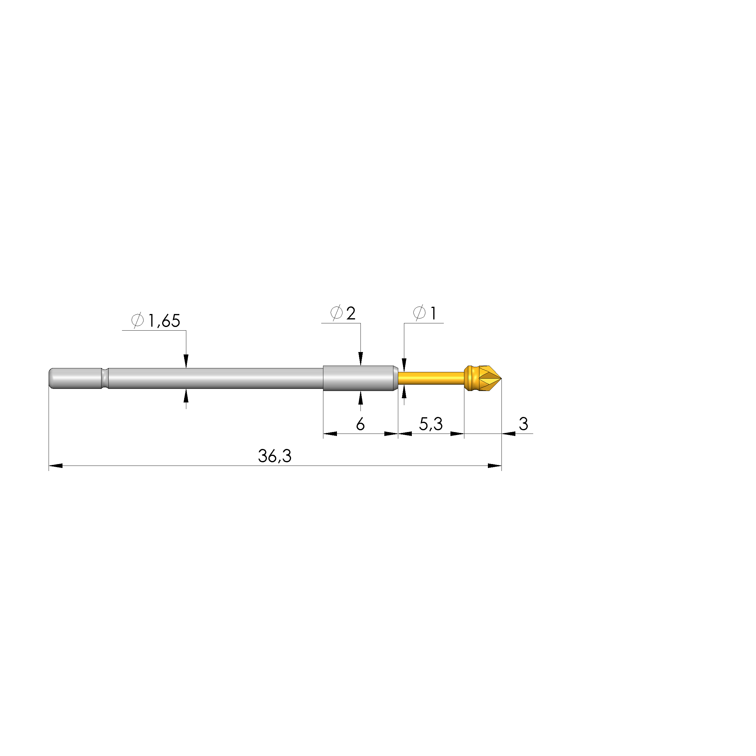 - Gesamtlänge: 36,3 mm