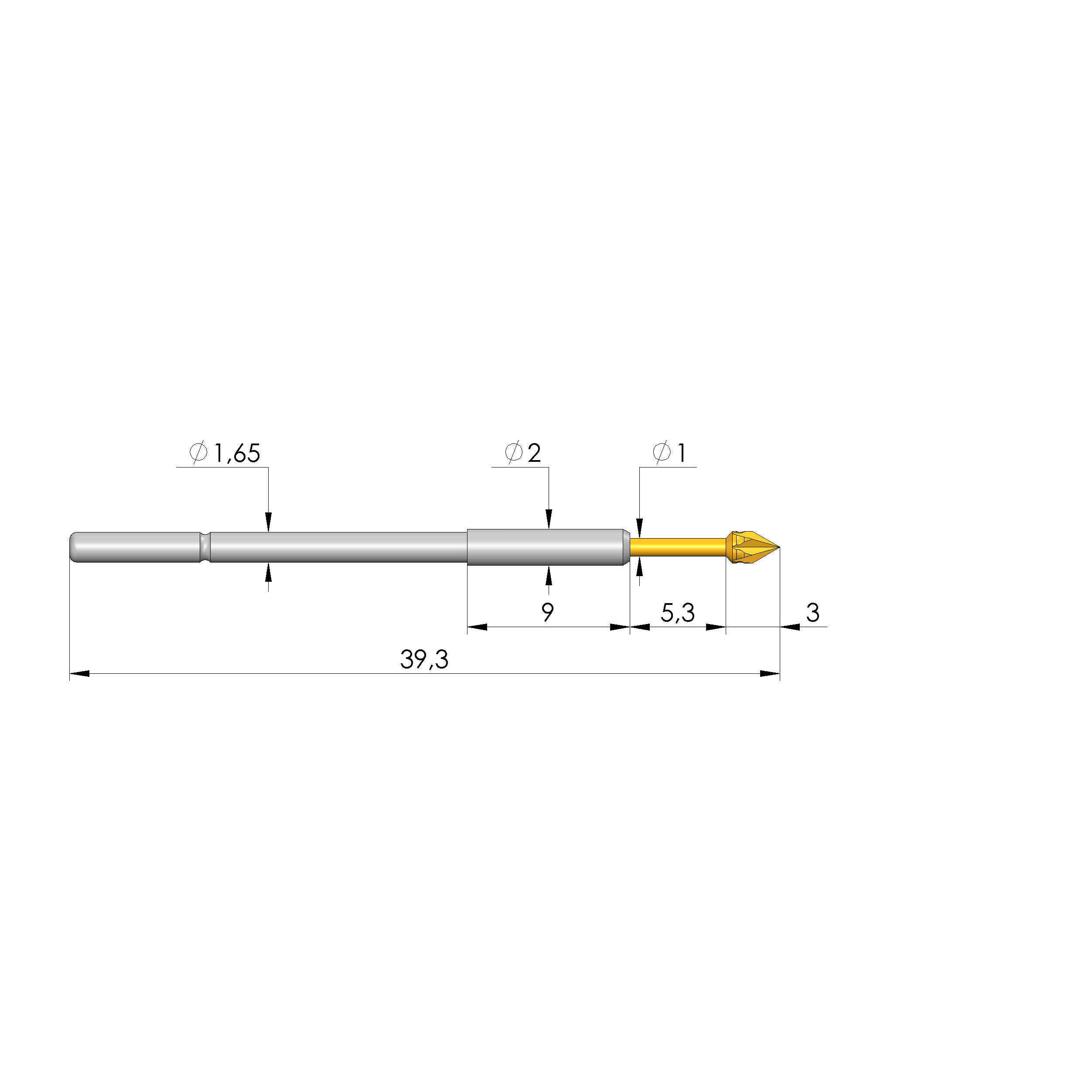 - Gesamtlänge: 39,3 mm