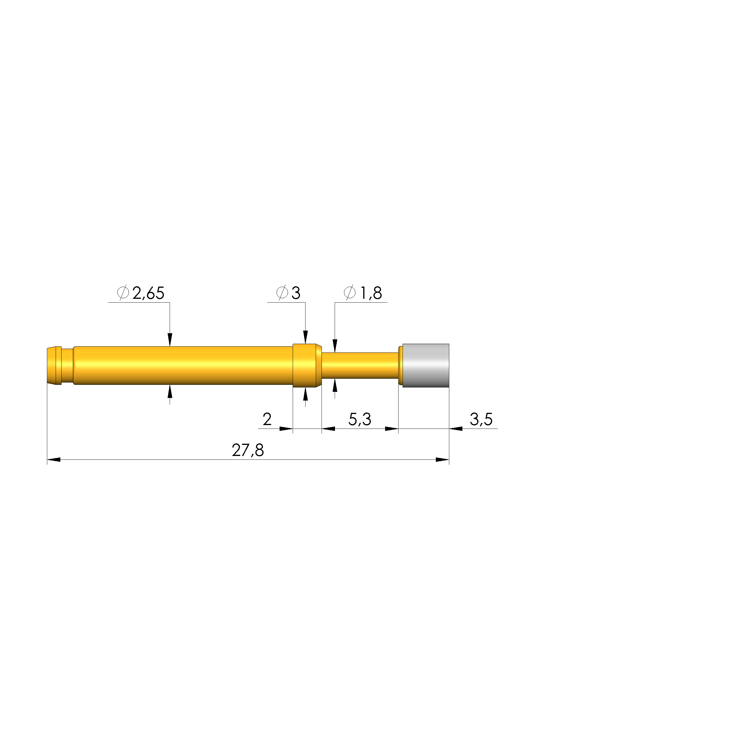 - Optimale Einstellung der Hubverhältnisse im Prüfadapter: Der Kontaktstift-Kragen (E-Maß) ist in unterschiedlichen Höhen lieferbar, was in Kombination mit den Kontaktsteckhülsen eine maximale Flexibilität der Einbauhöhe zulässt