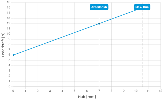- Federkraft bei Arbeitshub: 12 N