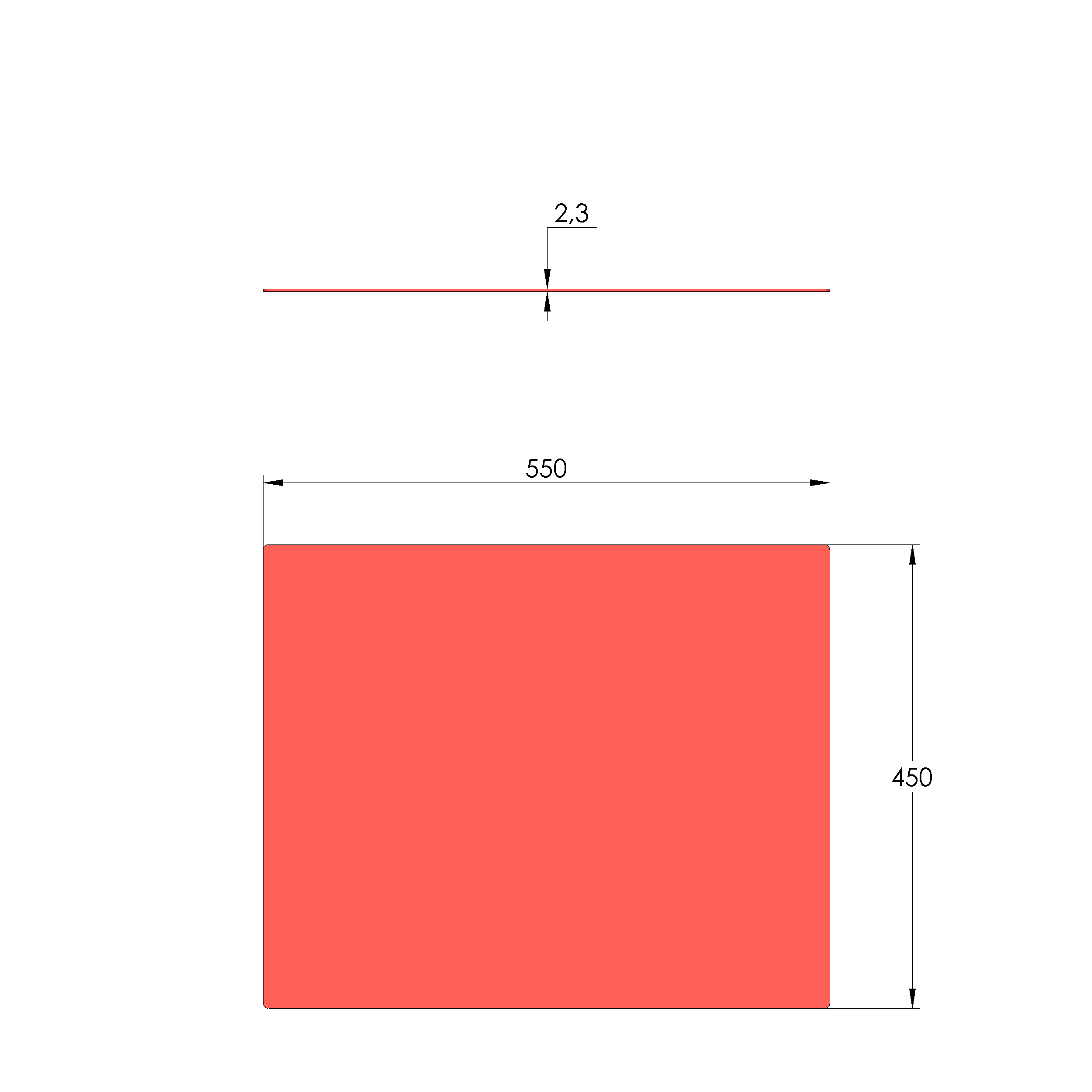 • Außenmaße (BxTxH): 550 x 450 x 2,3 +/- 0,4 mm