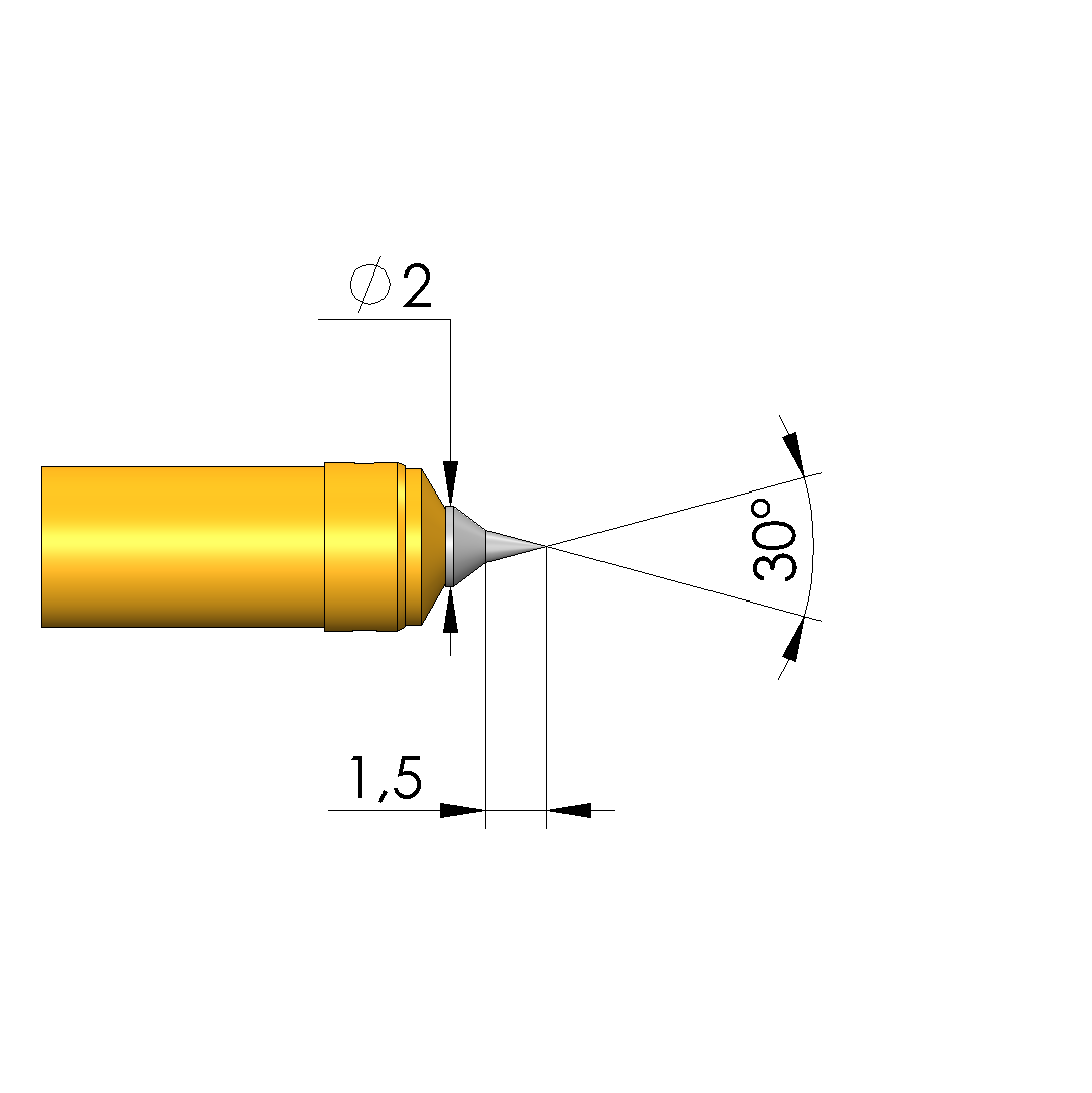 - Kopfform: 01 Spitze 30°, selbstreinigend