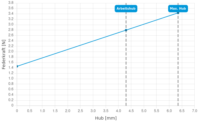| Federkraft bei Arbeitshub: | 2,8 N |