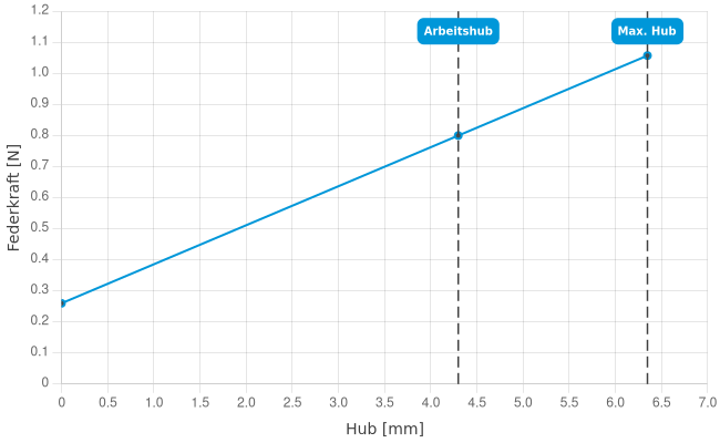 - Federkraft bei Arbeitshub: 0,8 N