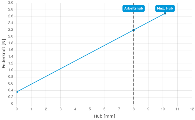 | Federkraft bei Arbeitshub: | 2,2 N |