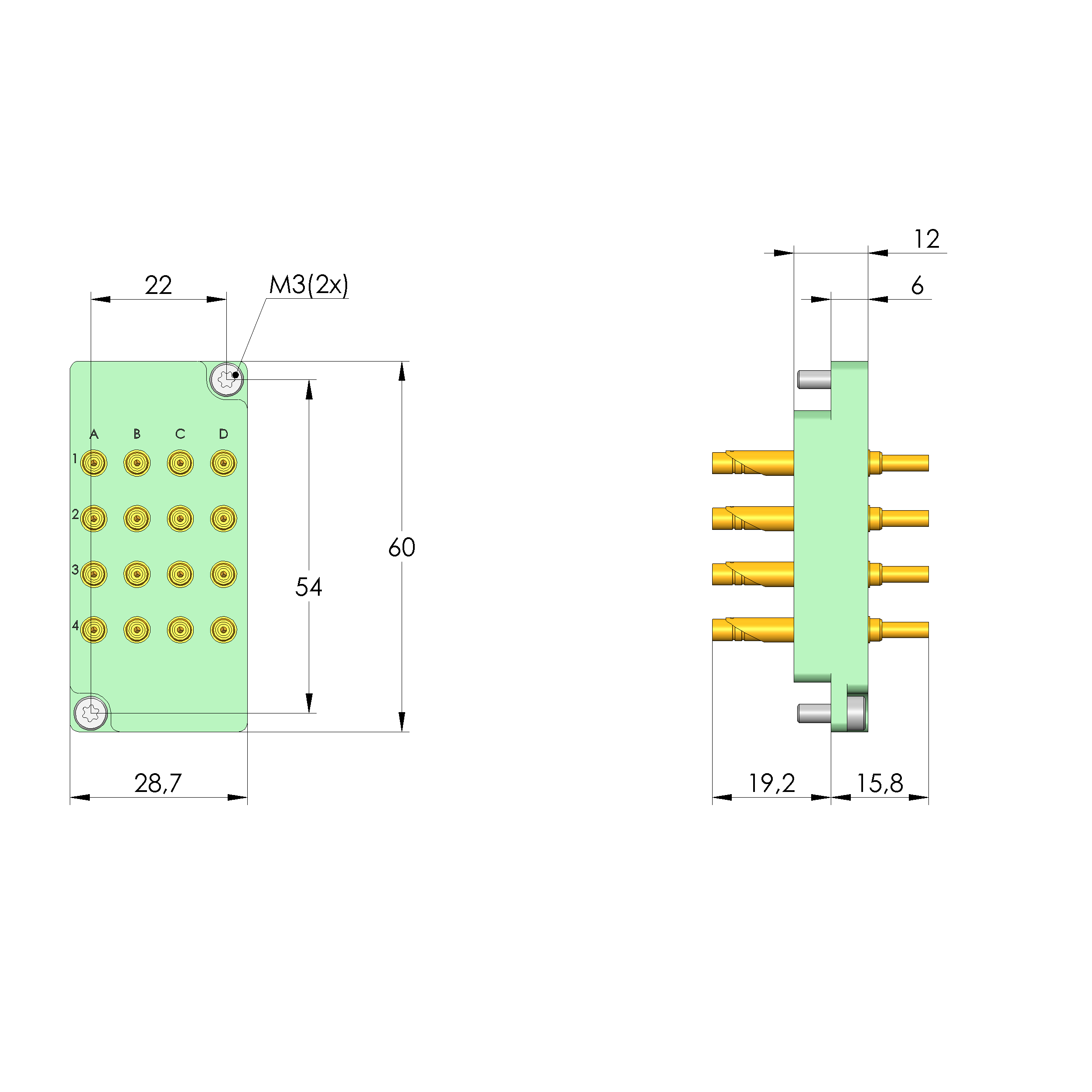 - Bestückt mit INGUN-Kontaktstiften