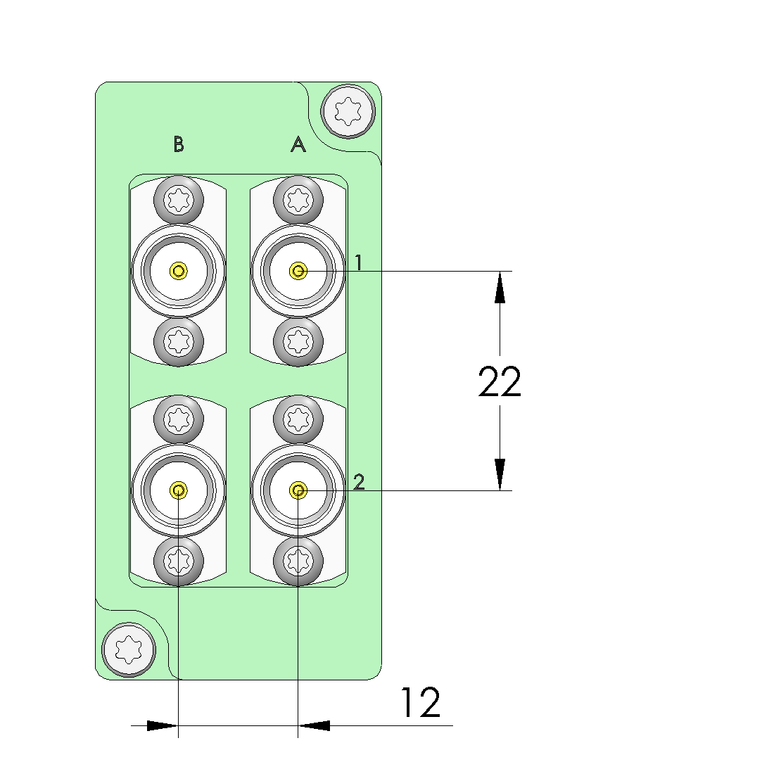 - Bestückung: STV-BMA/SMA-F/F-18GHz-50OHM-FL