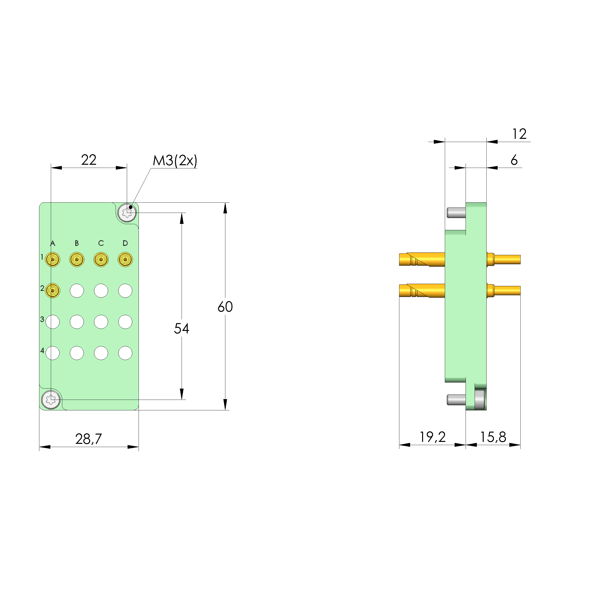 - Bestückt mit INGUN-Kontaktstiften