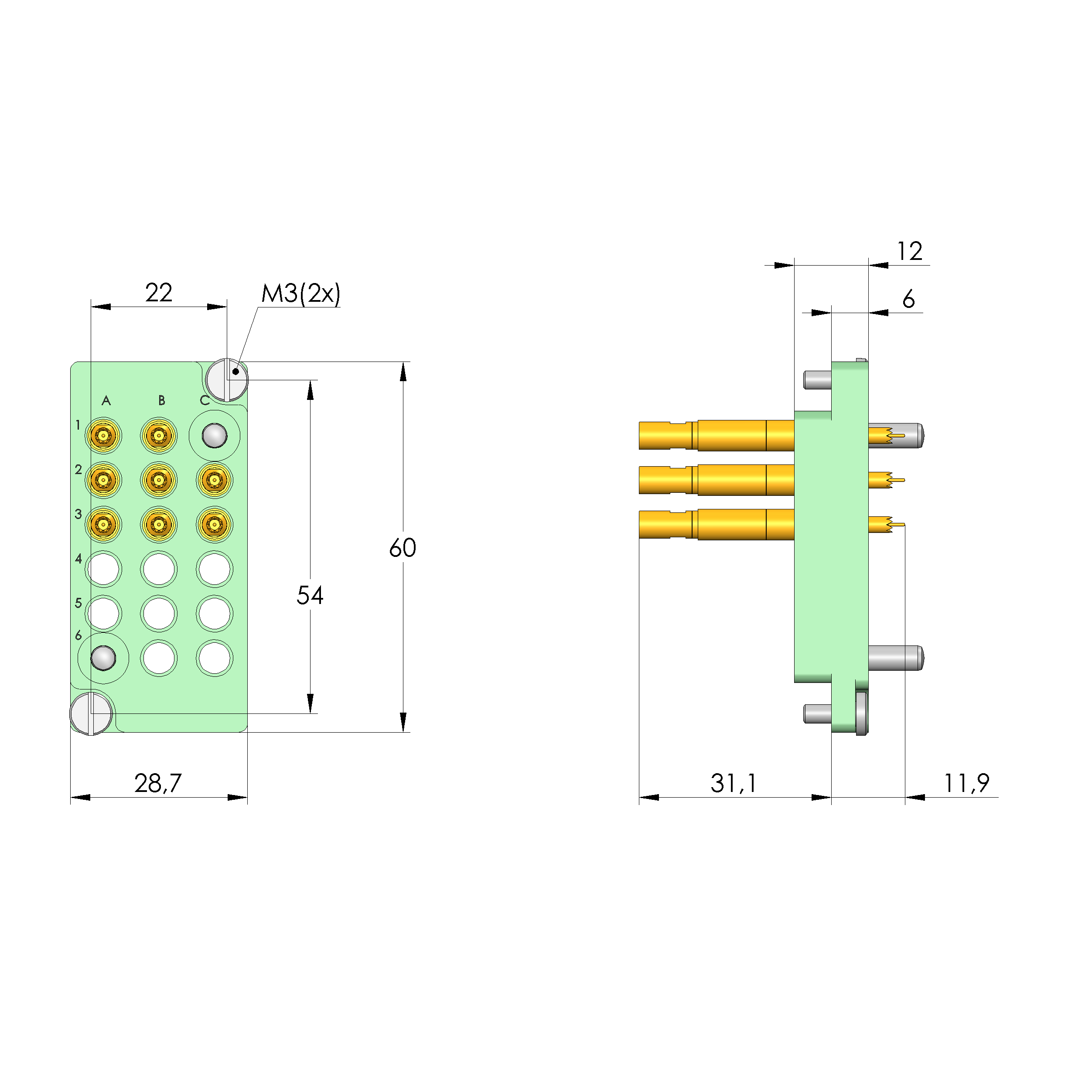 - Bestückt mit INGUN-Kontaktstiften