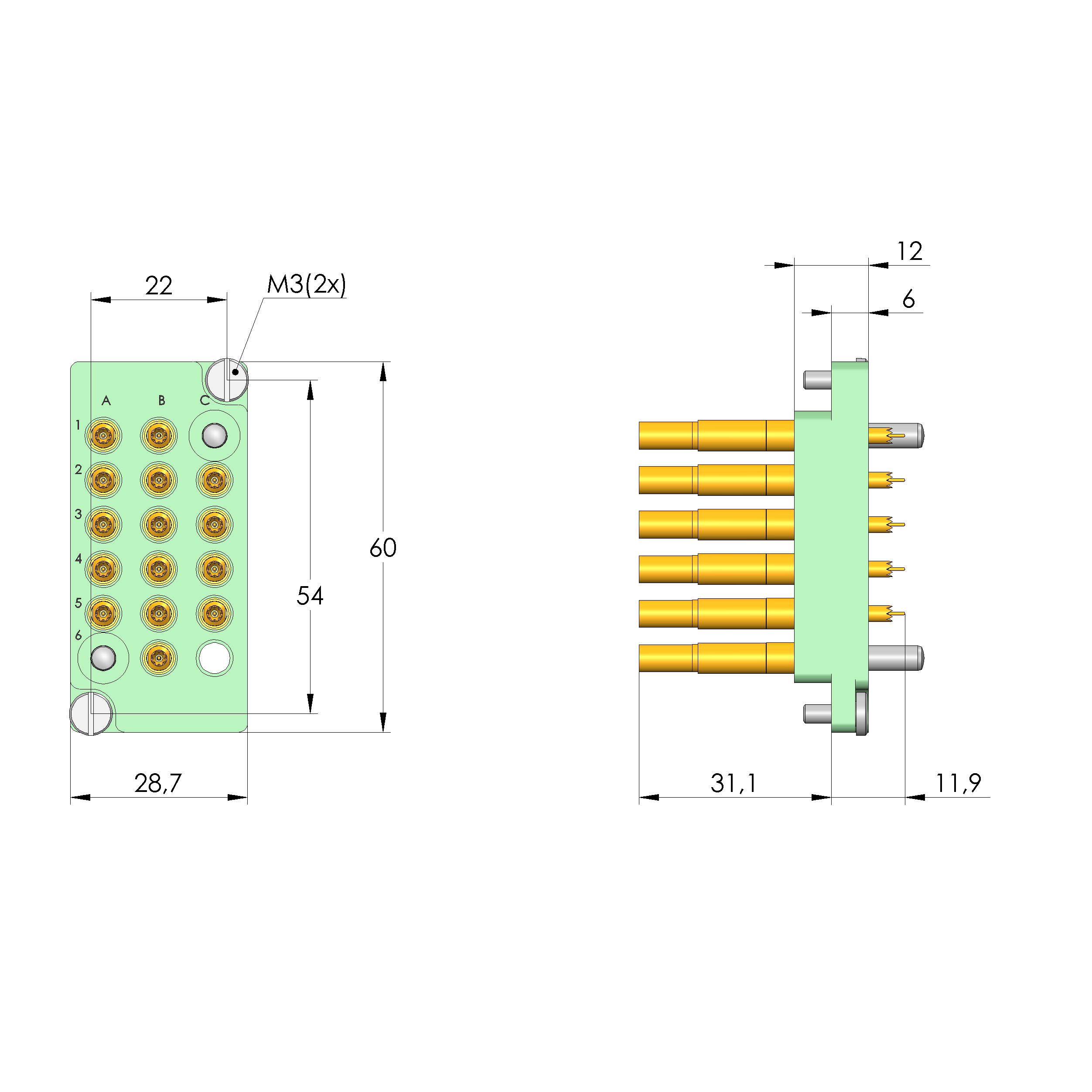 - Bestückt mit INGUN-Kontaktstiften