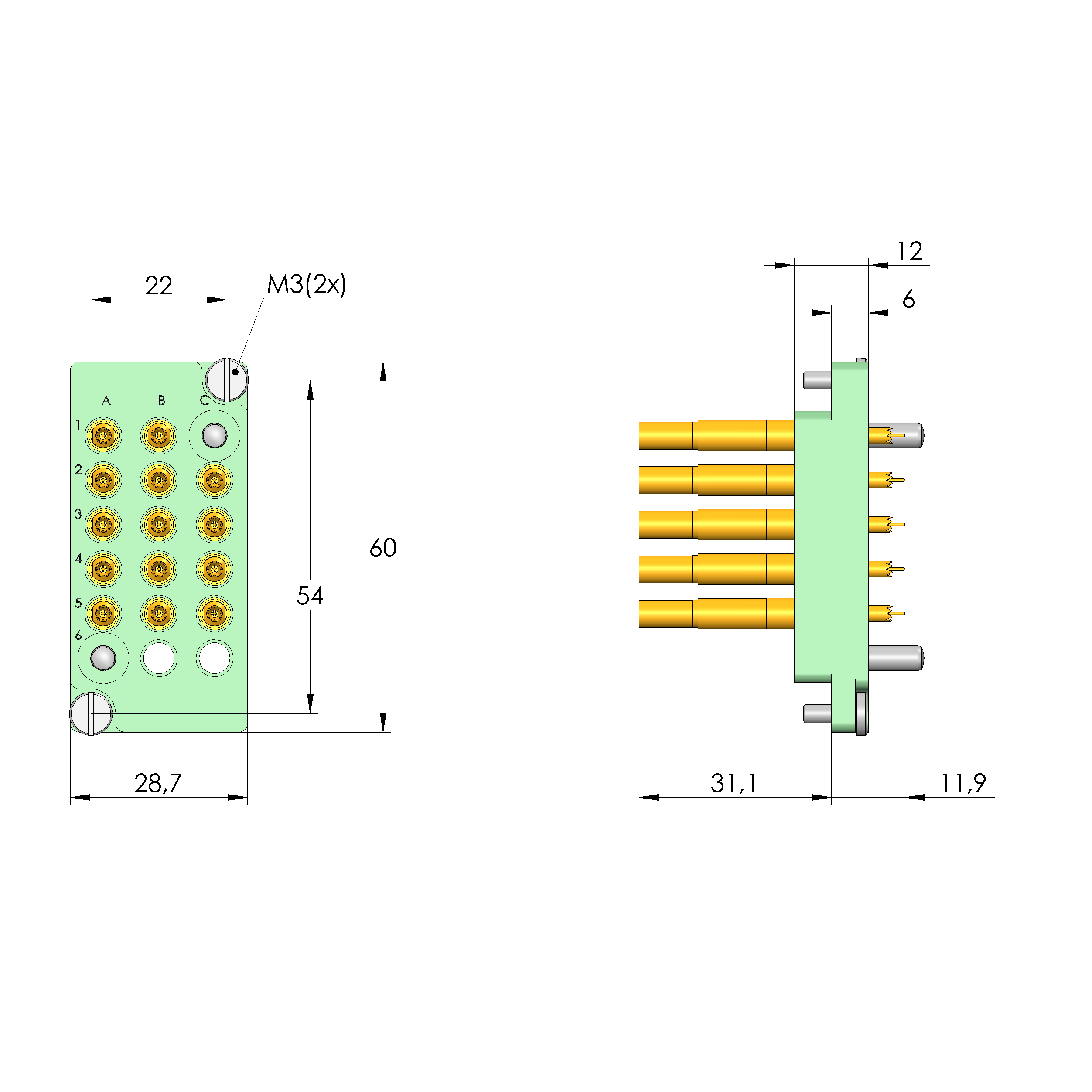 - Bestückt mit INGUN-Kontaktstiften