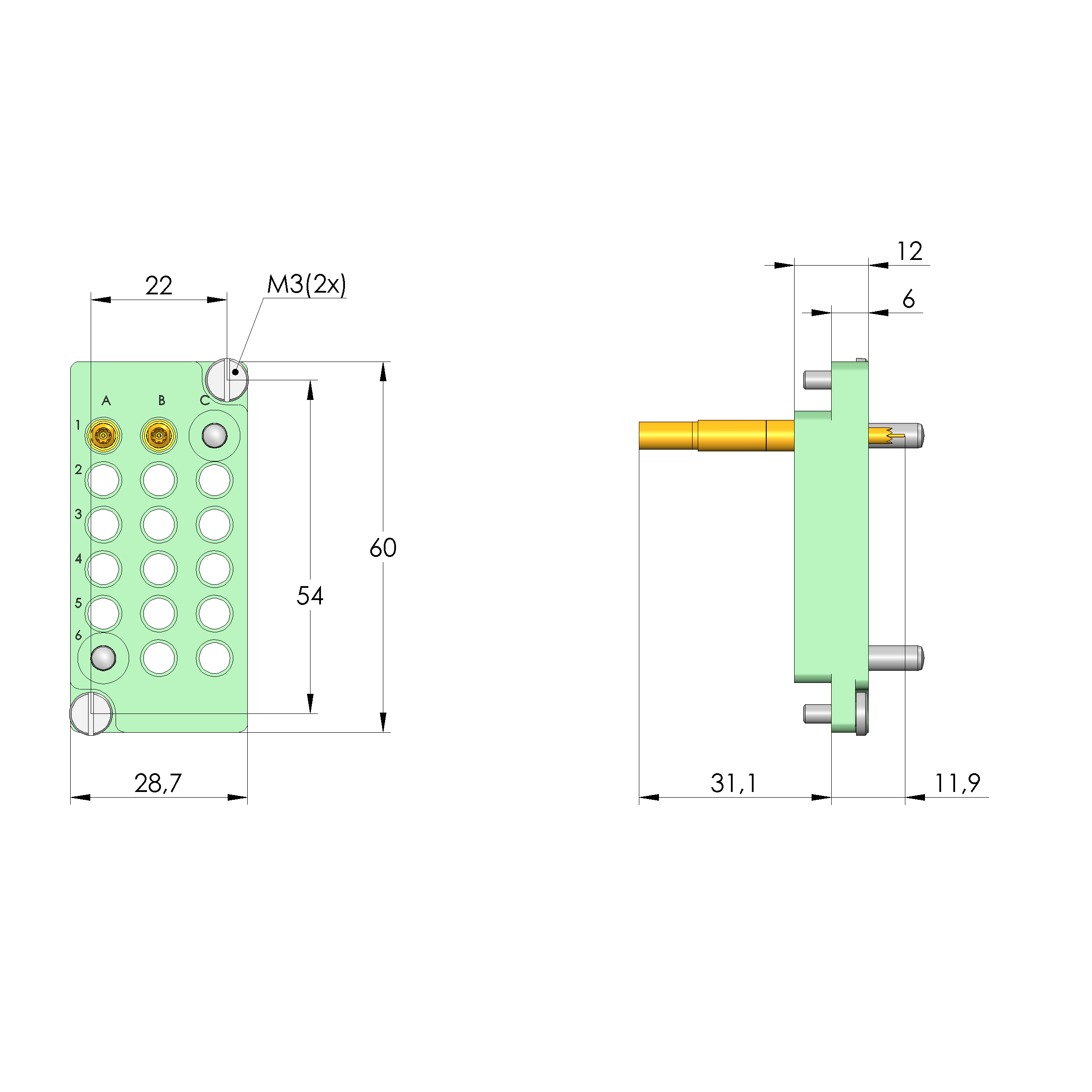 - Bestückt mit INGUN-Kontaktstiften