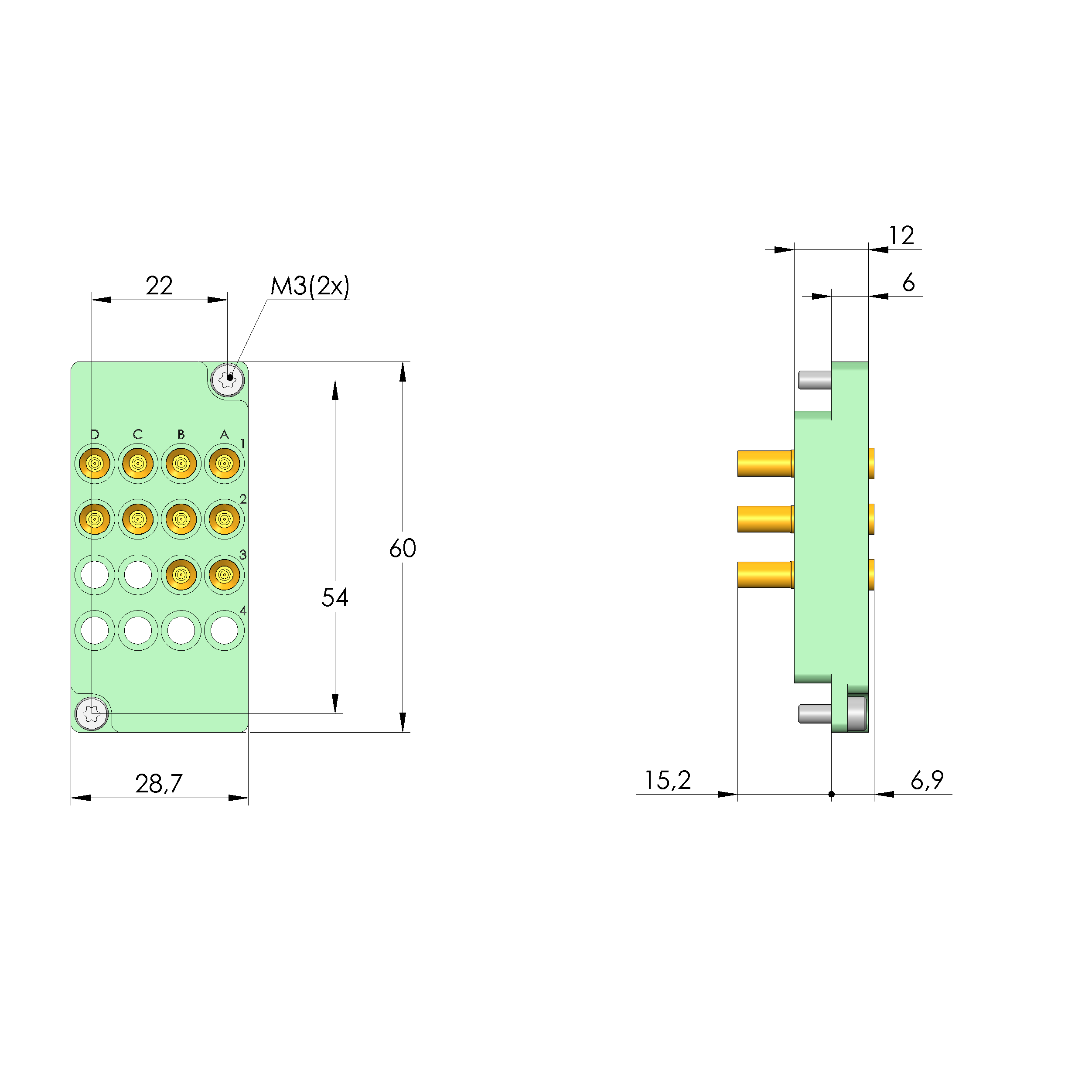 - Bestückt mit INGUN-Kontaktstiften