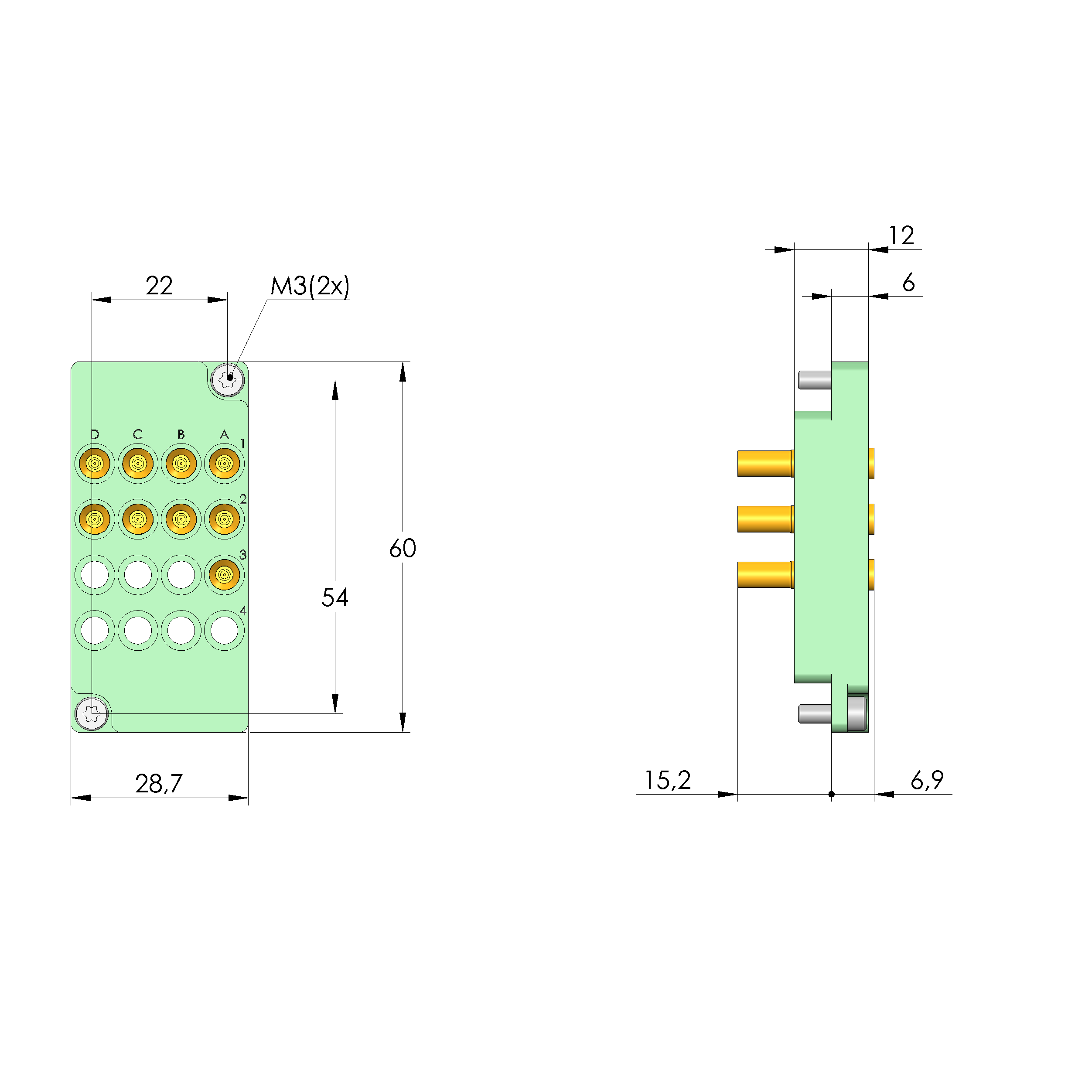 - Bestückt mit INGUN-Kontaktstiften