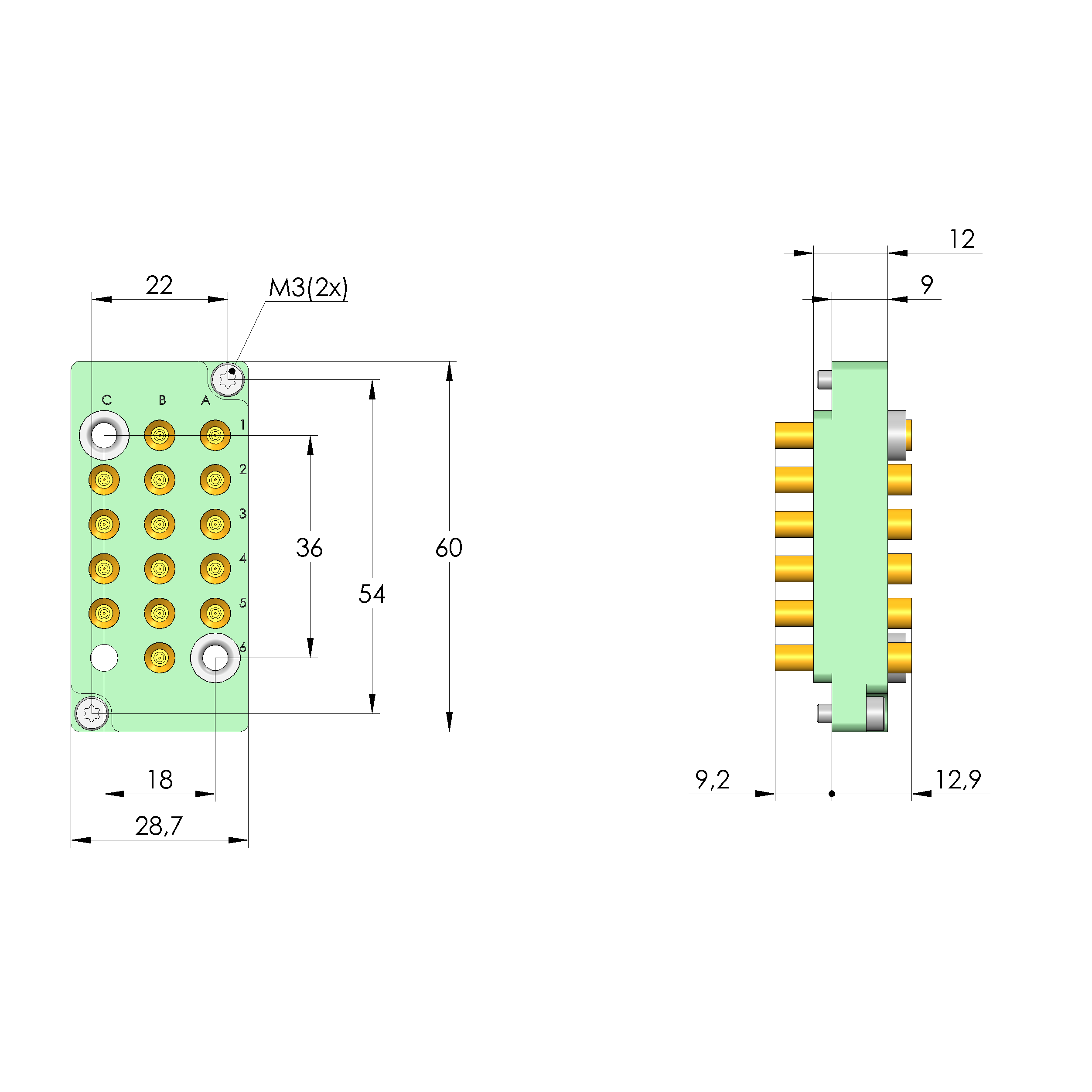 - Bestückt mit INGUN-Kontaktstiften