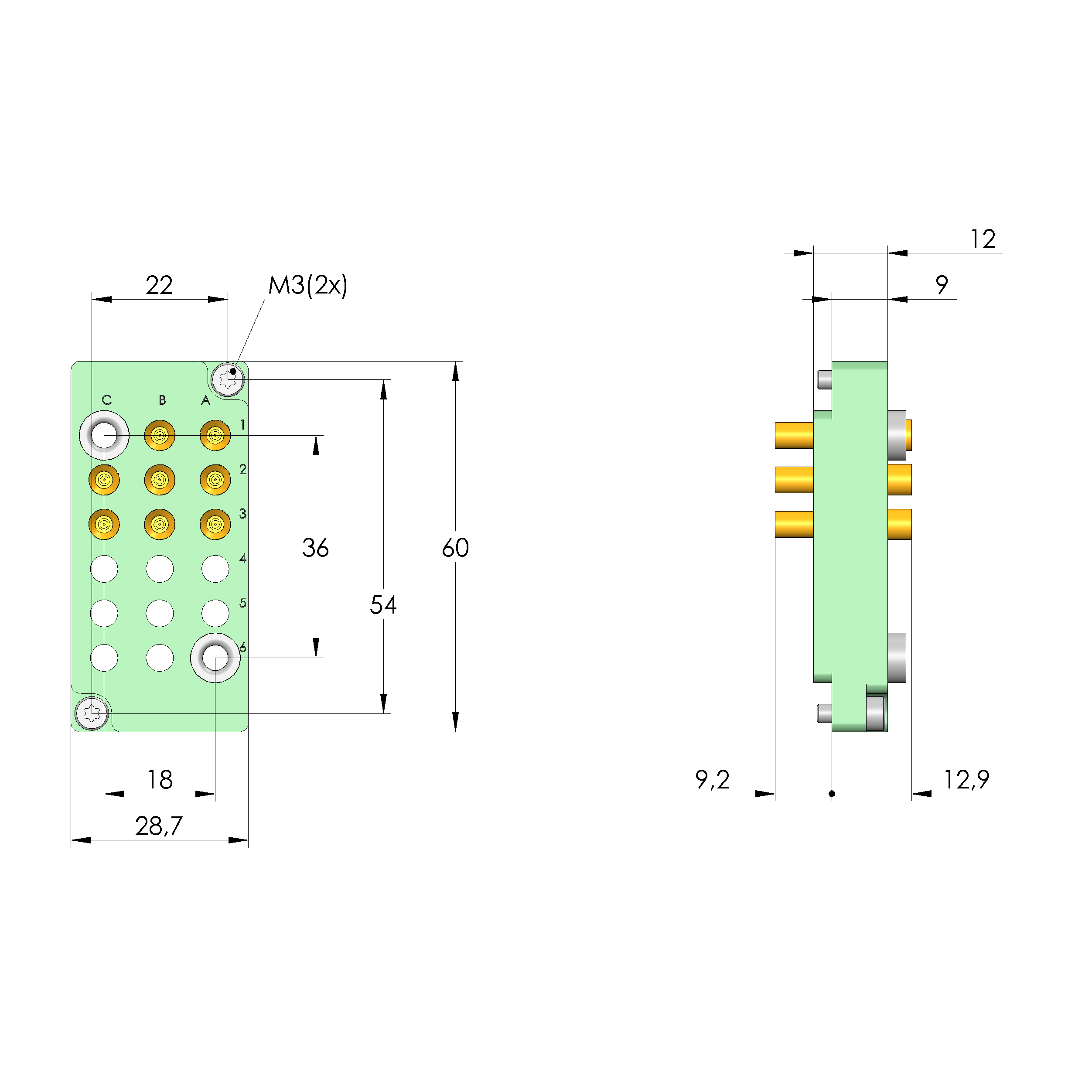 - Bestückt mit INGUN-Kontaktstiften