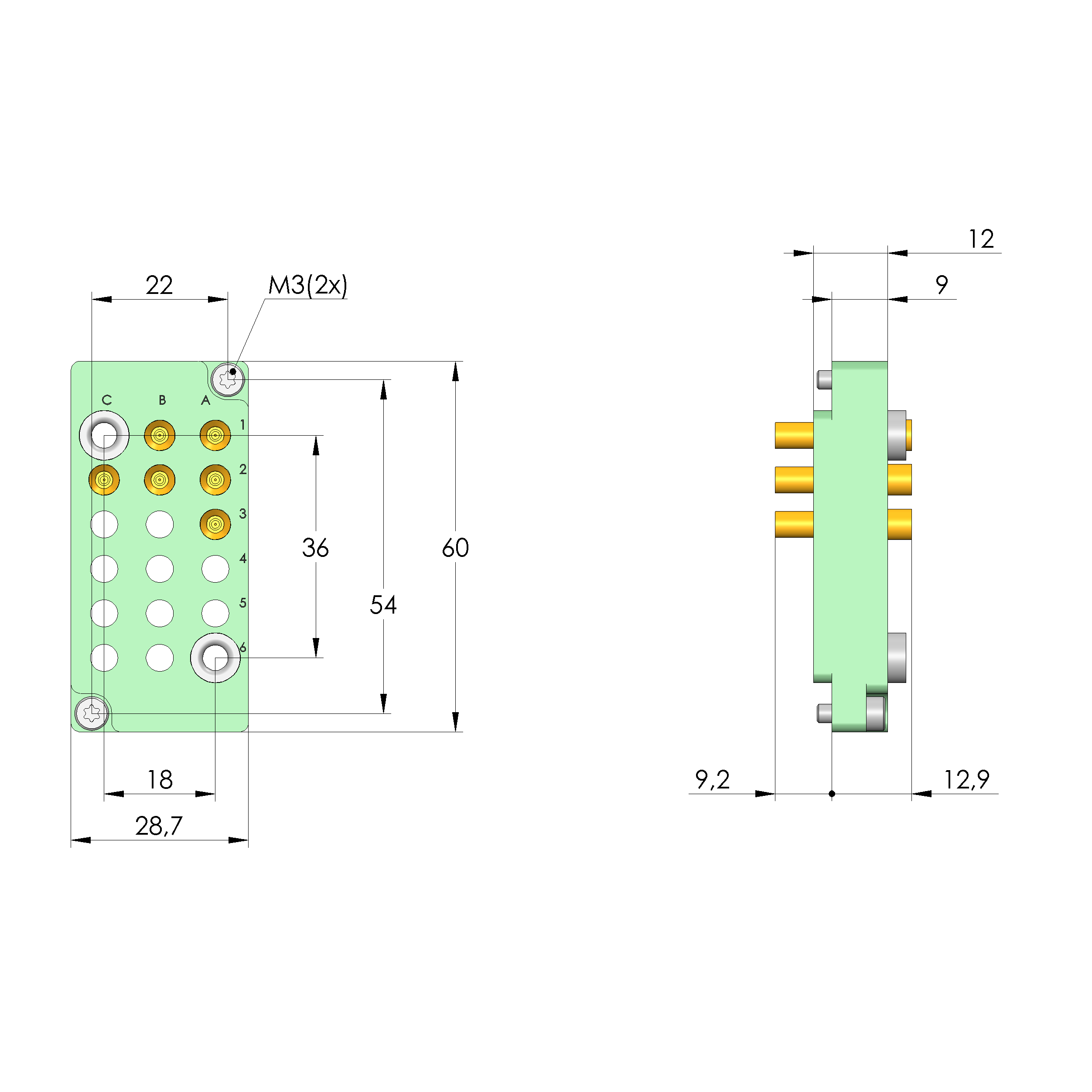 - Bestückt mit INGUN-Kontaktstiften
