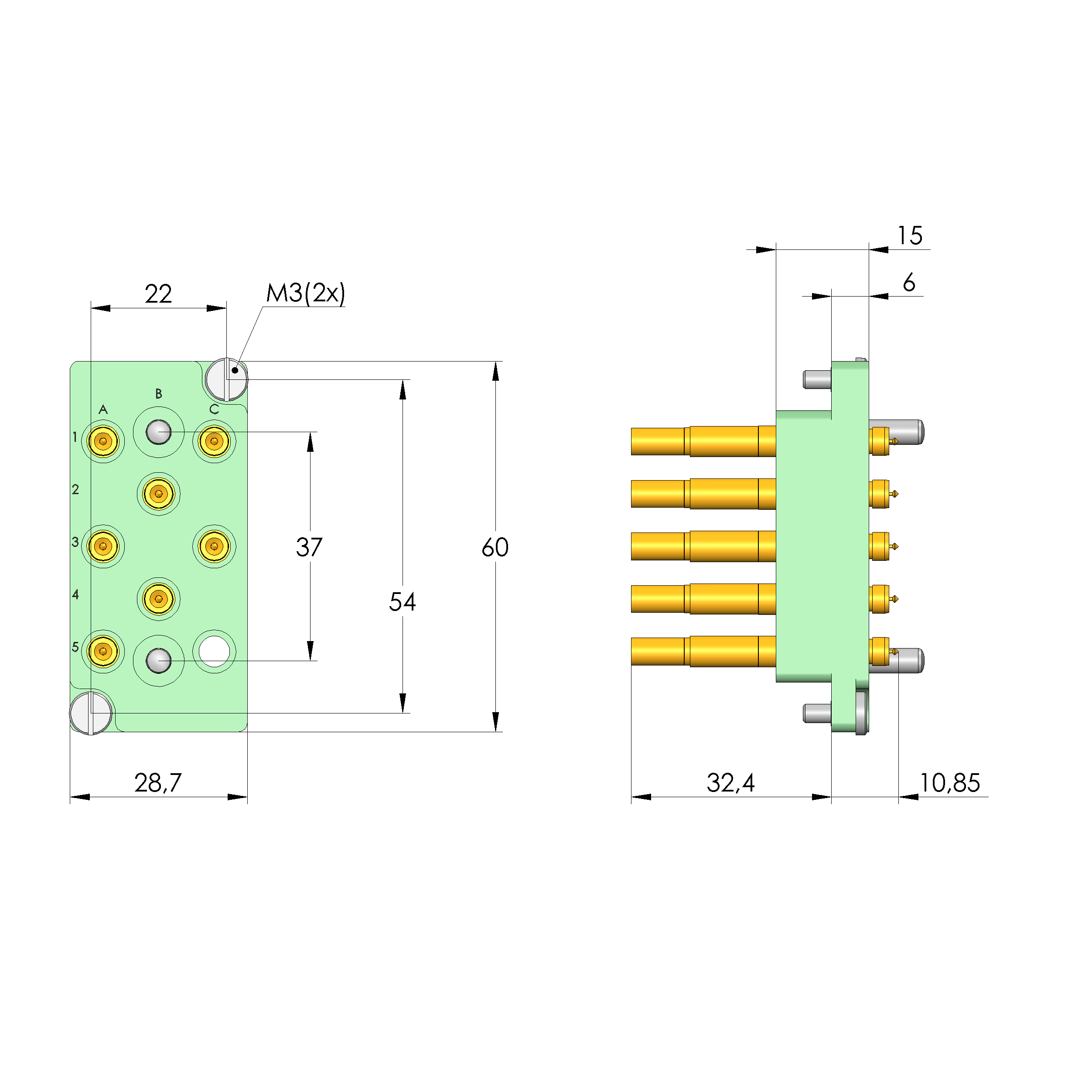 - Bestückt mit INGUN-Kontaktstiften