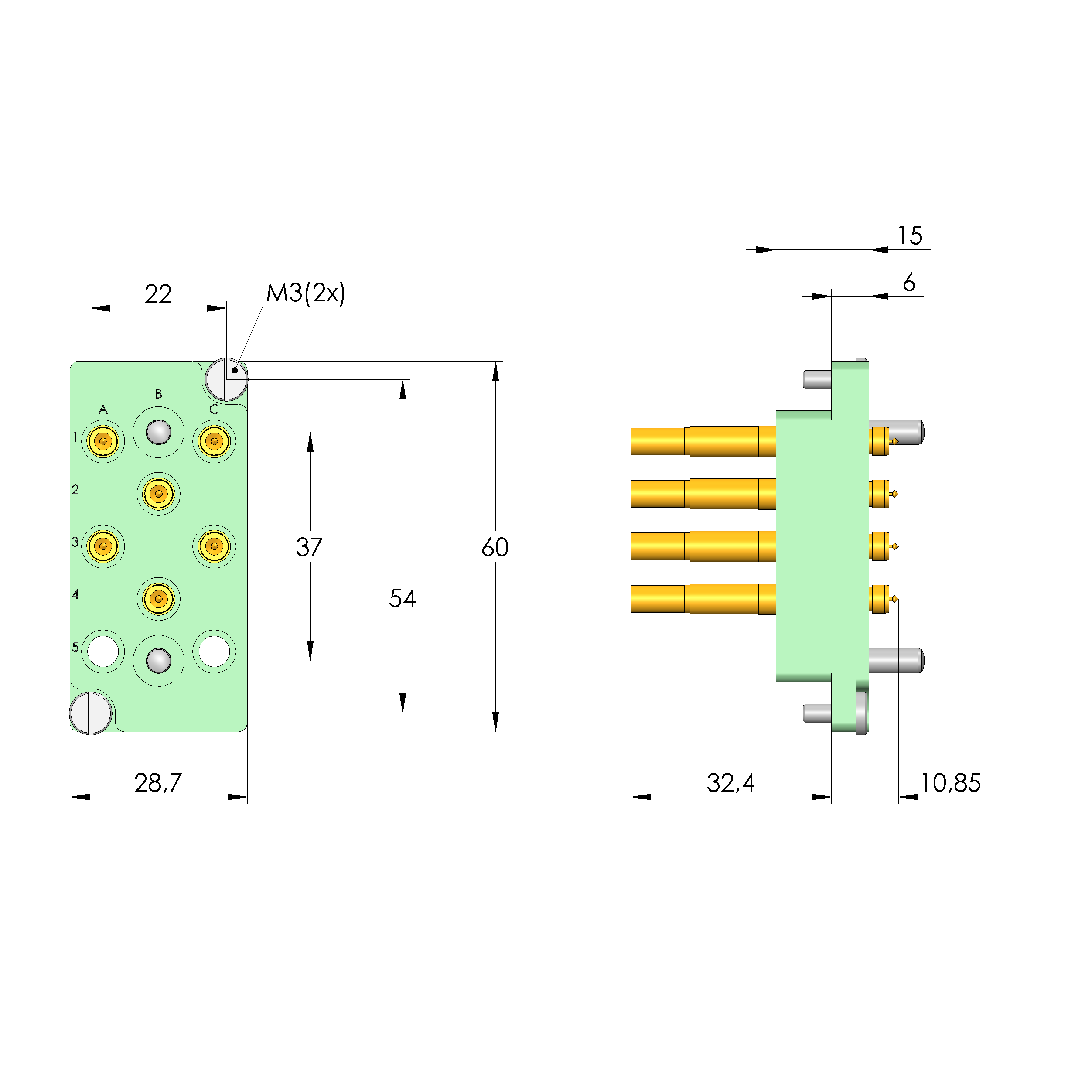 - Bestückt mit INGUN-Kontaktstiften