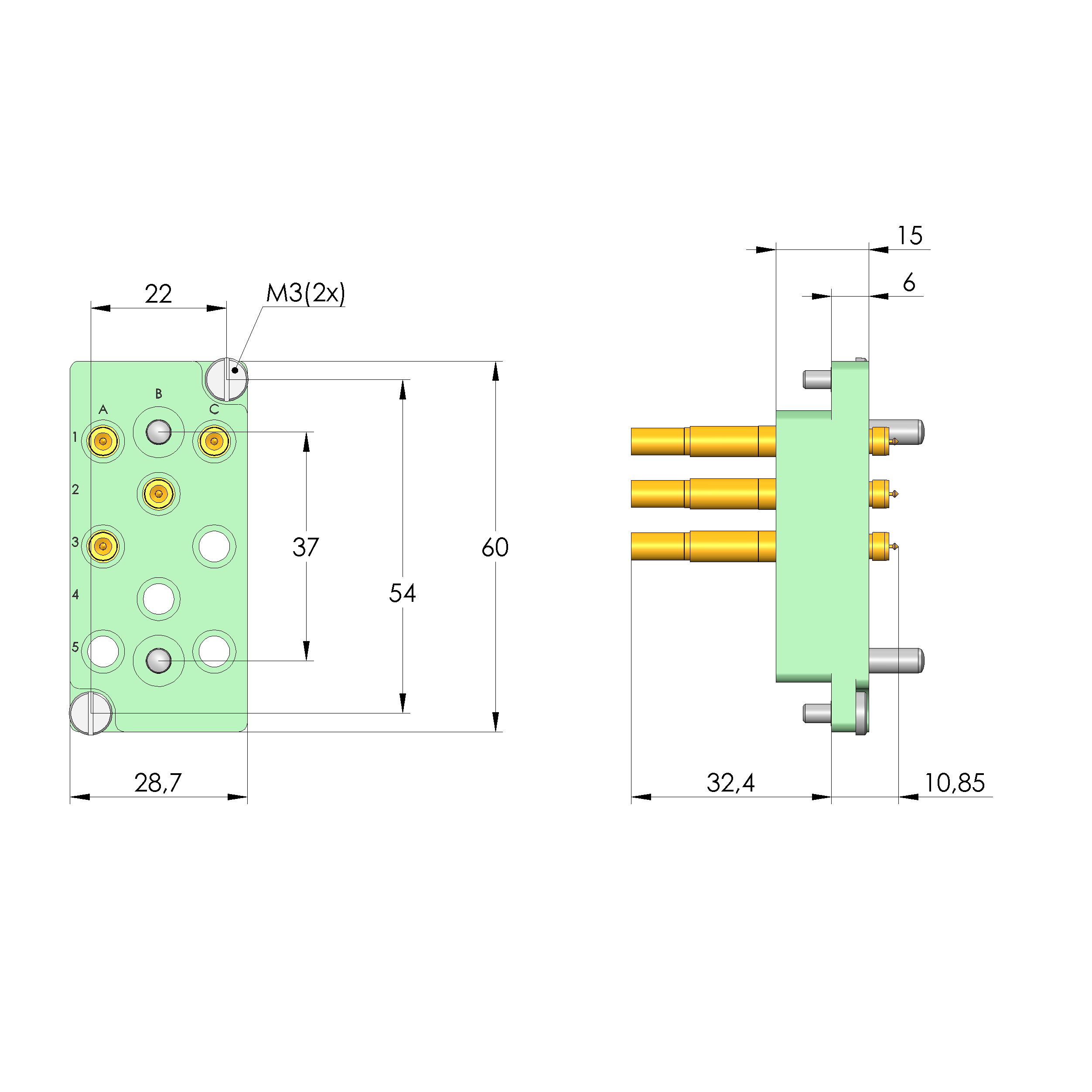 - Bestückt mit INGUN-Kontaktstiften