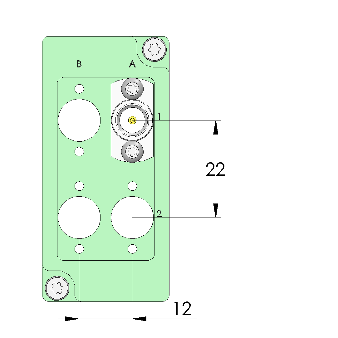 • Bestückung: STV-BMA/SMA-F/F-18GHz-50OHM-FL