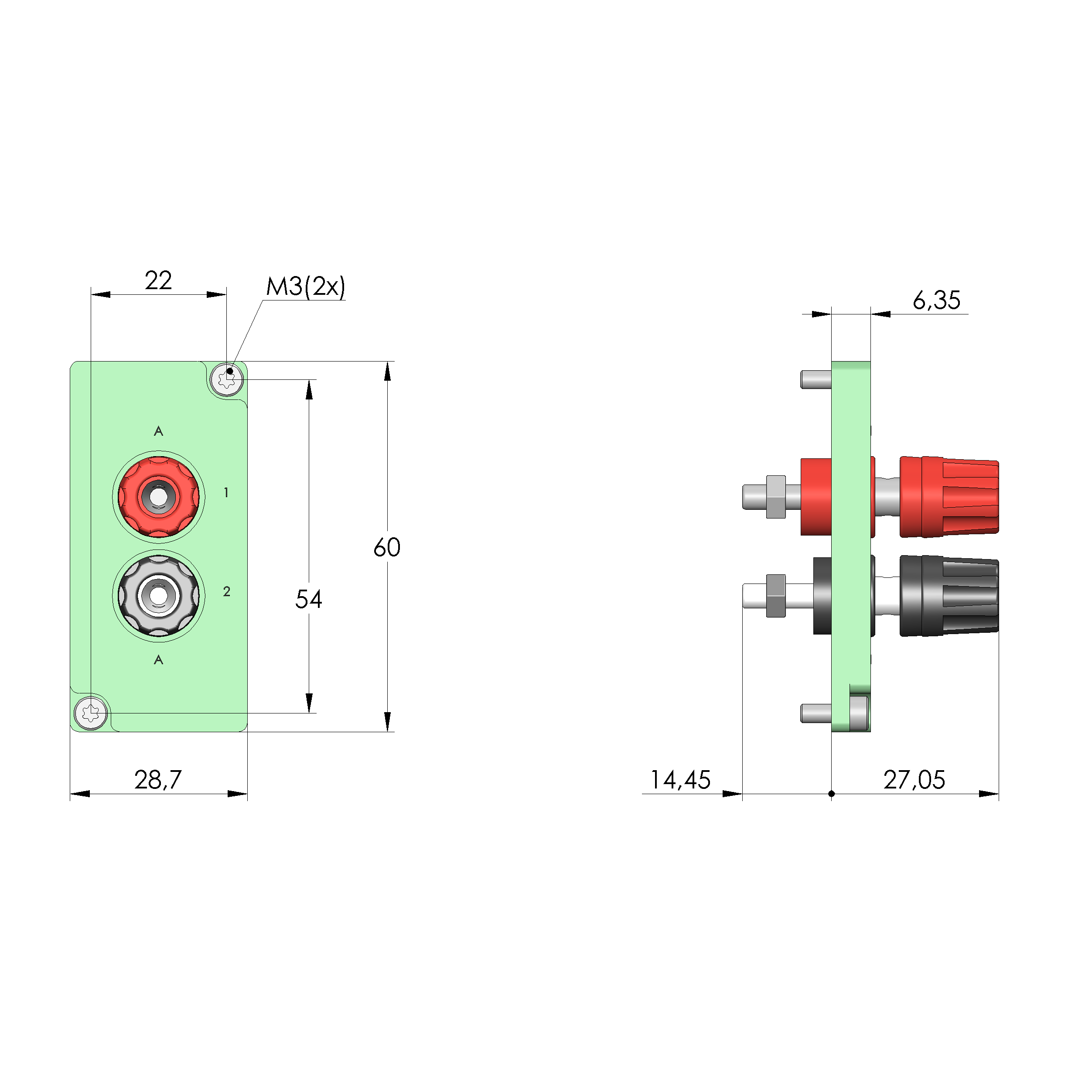 - Bestückt mit Polklemme STV-PK4-M4-RT/SW