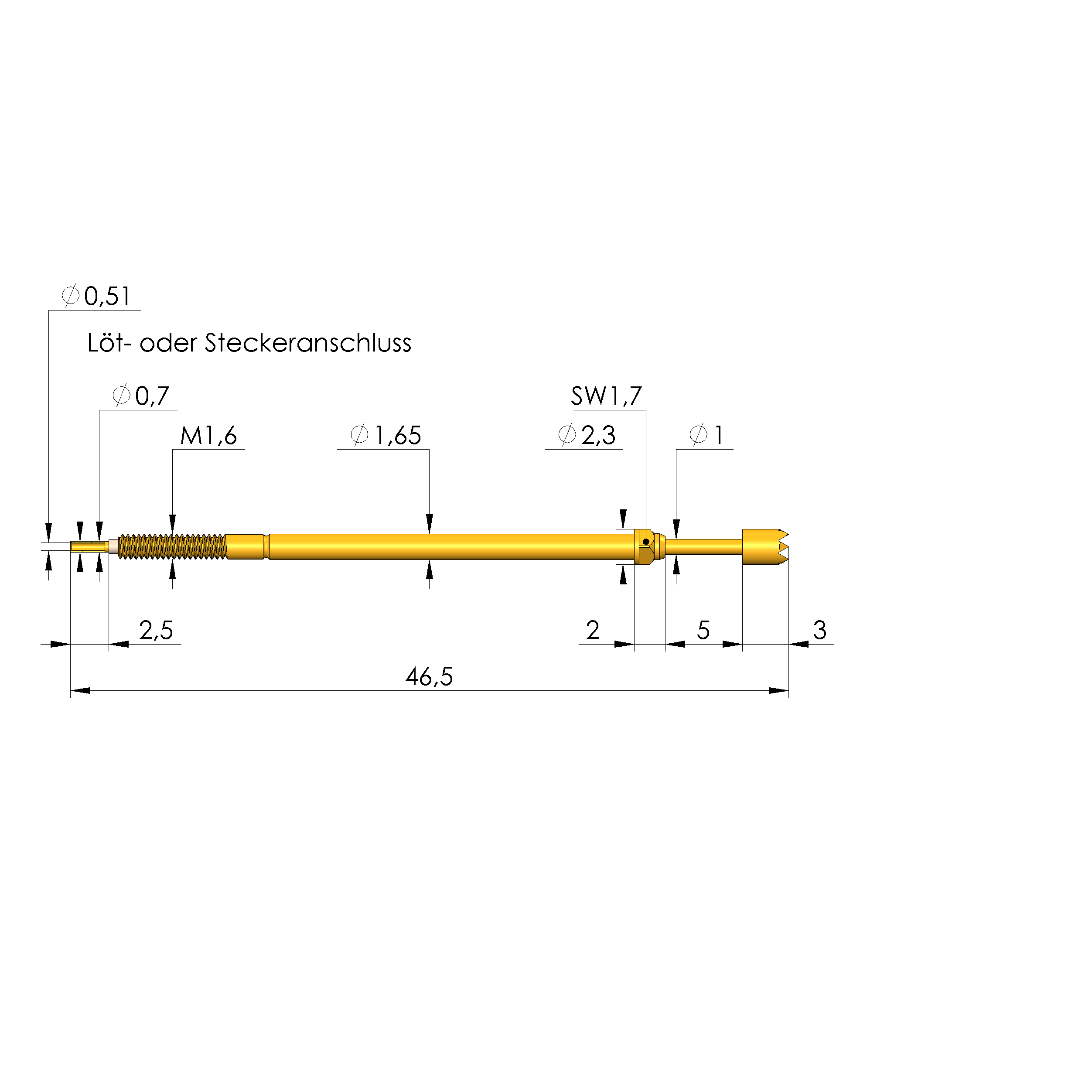 - Gesamtlänge: 46,5 mm