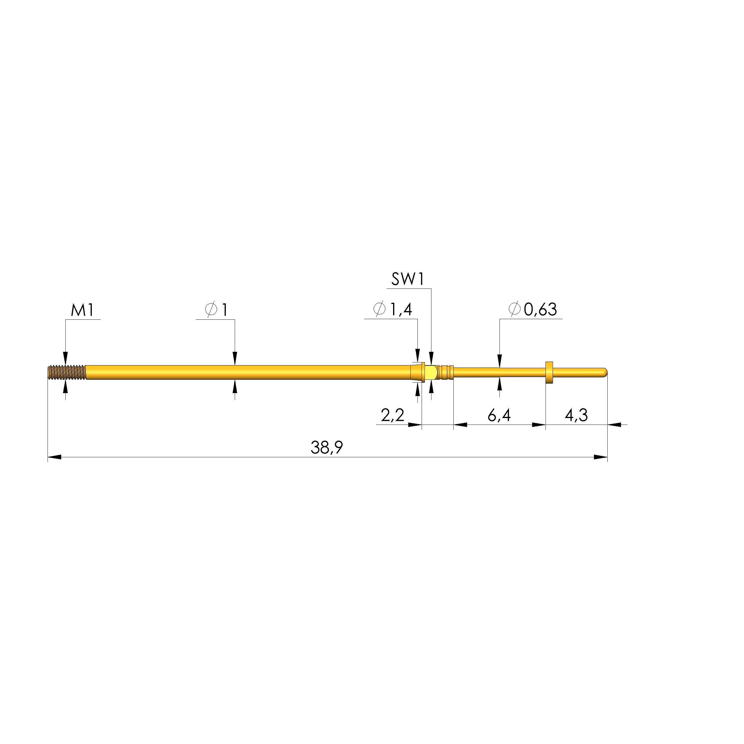 - Gesamtlänge: 38,9 mm