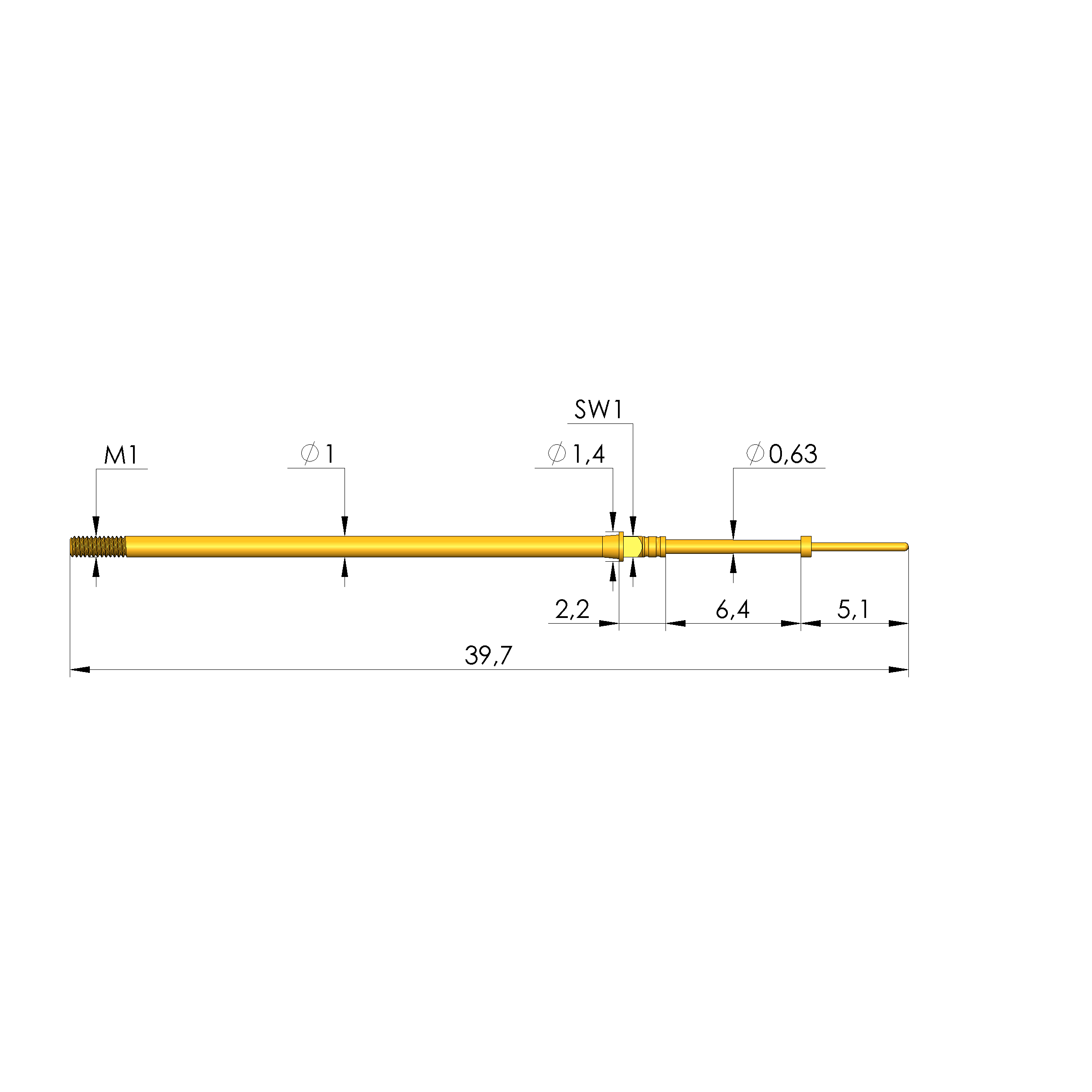 - Gesamtlänge: 39,7 mm