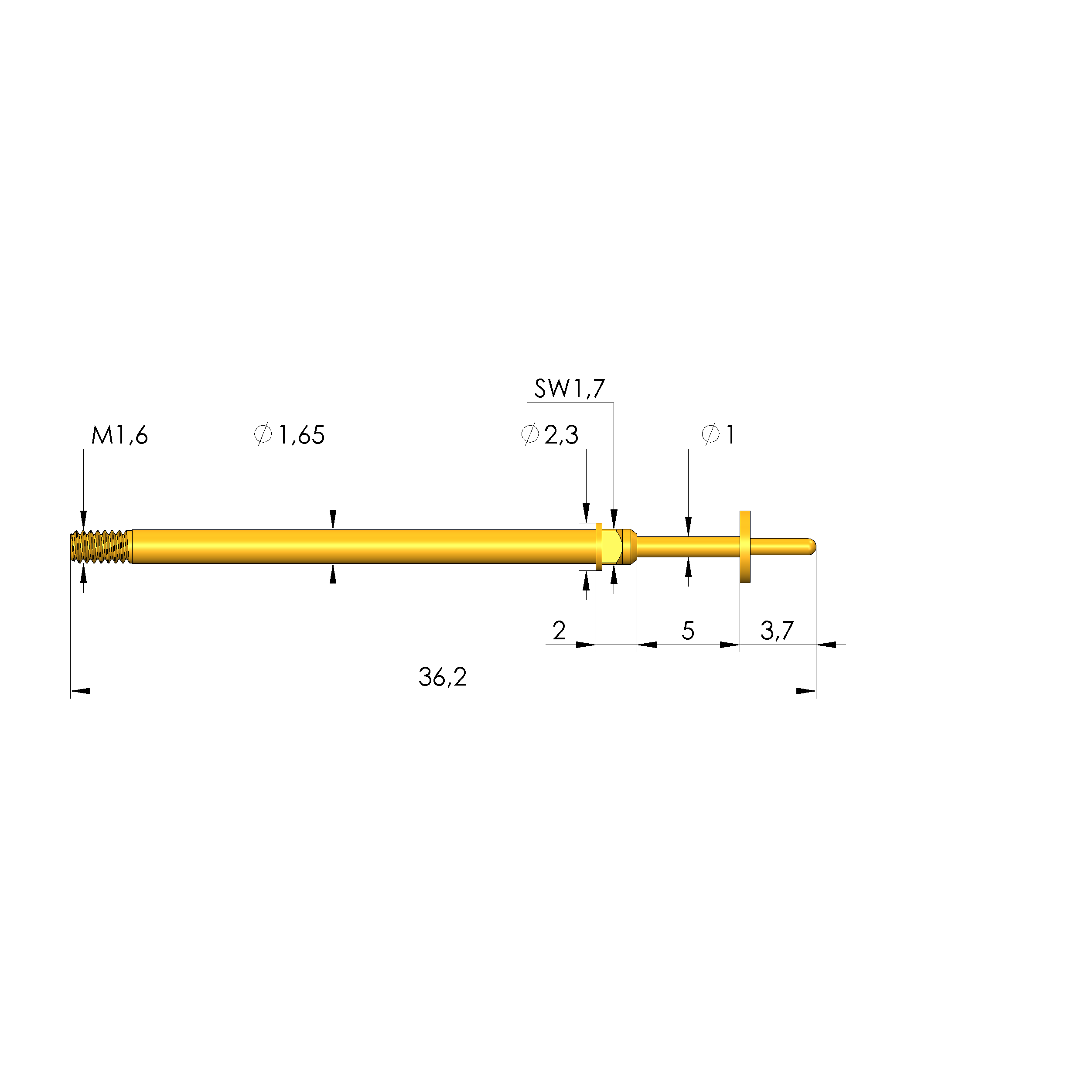 - Gesamtlänge: 36,2 mm