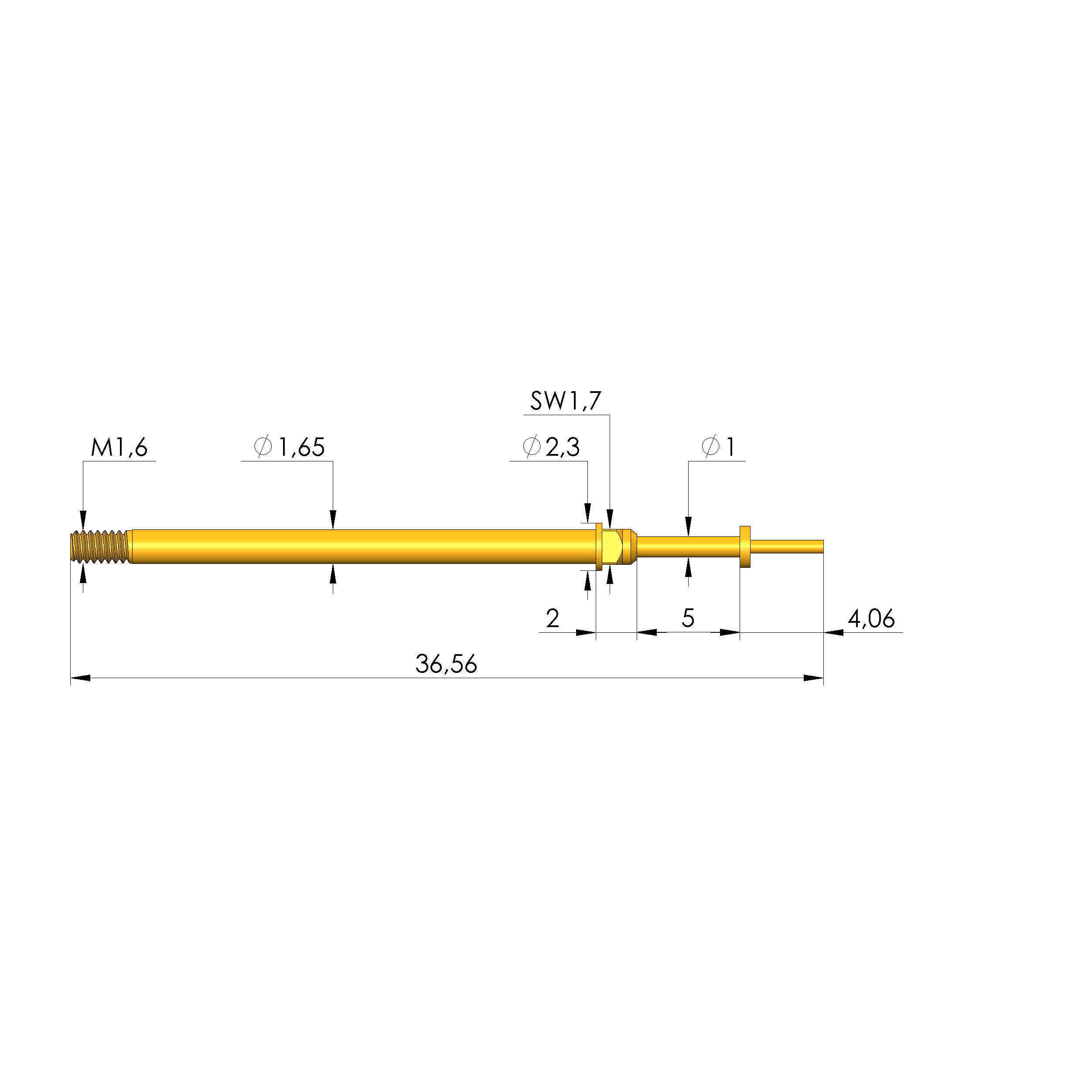 - Gesamtlänge: 36,5 mm