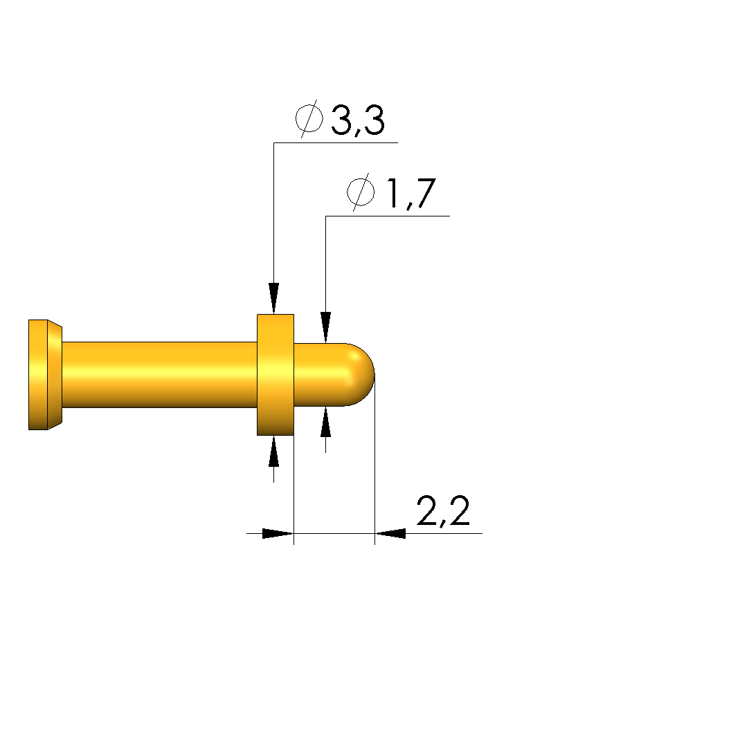 - Zur optimalen Kontaktierung sind unterschiedliche Kopfformen in verschiedenen Kopf-Ø, Teller-Ø und Pin-Längen verfügbar