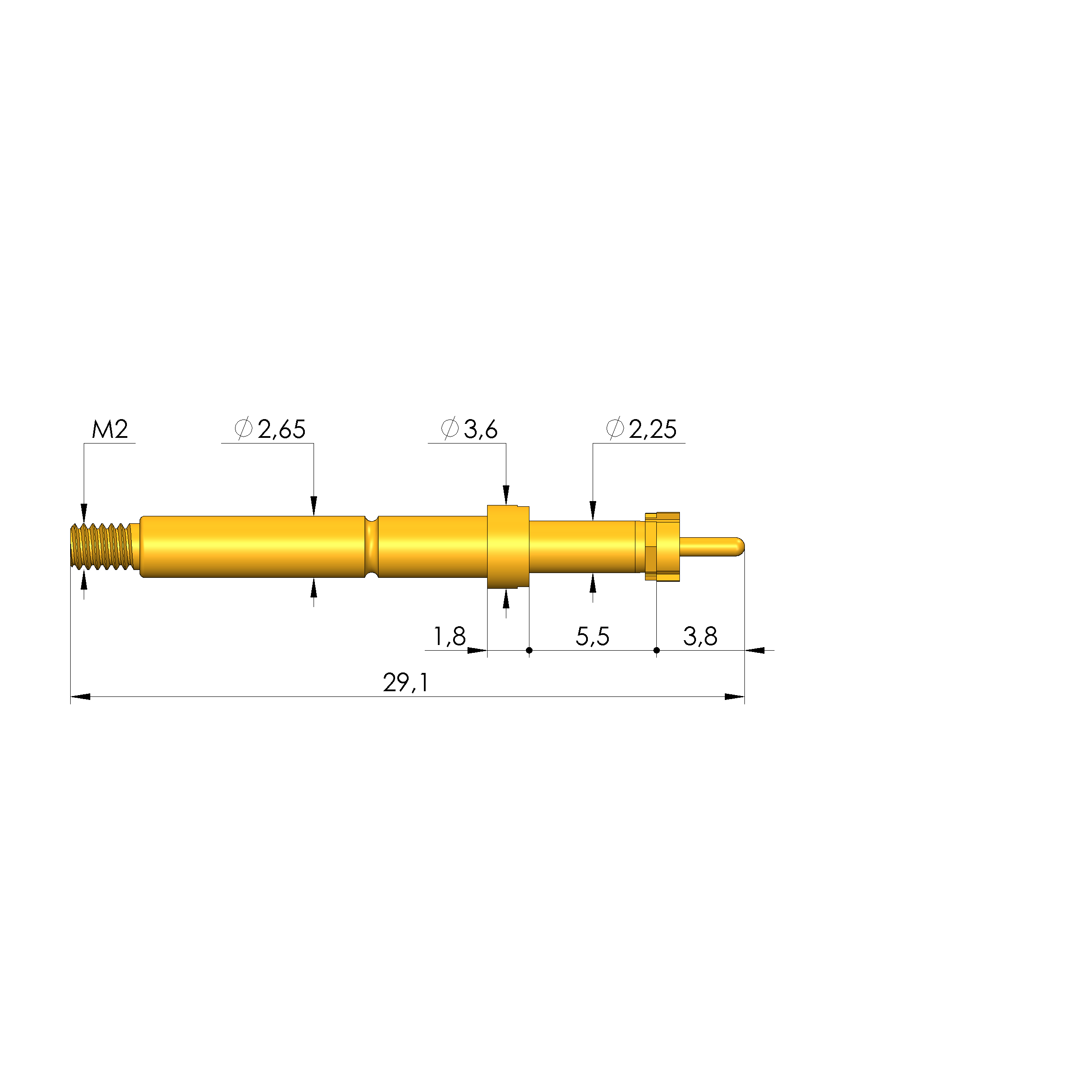 - Zur optimalen Kontaktierung sind unterschiedliche Kopfformen in verschiedenen Kopf-Ø, Teller-Ø und Pin-Längen verfügbar