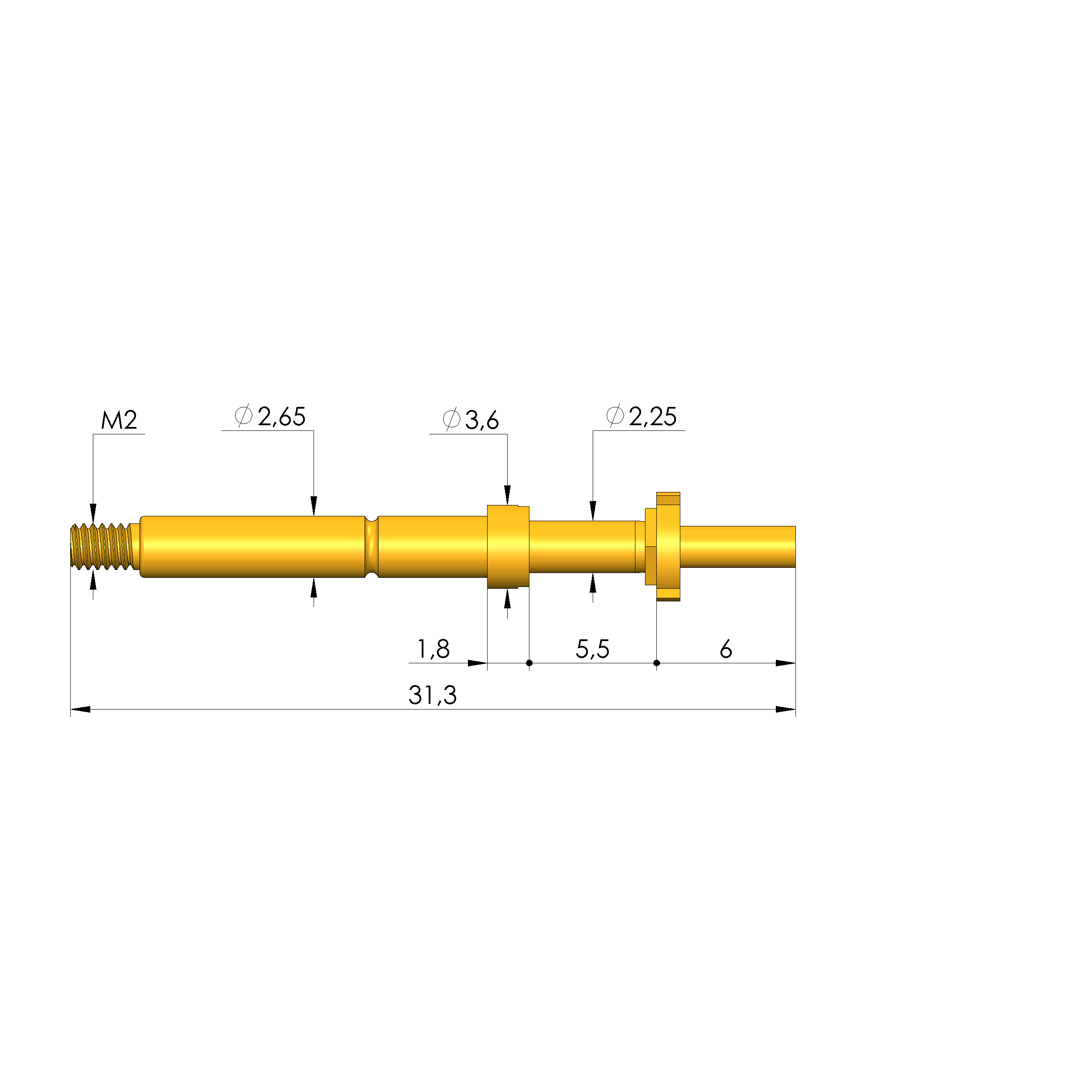 - Zur optimalen Kontaktierung sind unterschiedliche Kopfformen in verschiedenen Kopf-Ø, Teller-Ø und Pin-Längen verfügbar