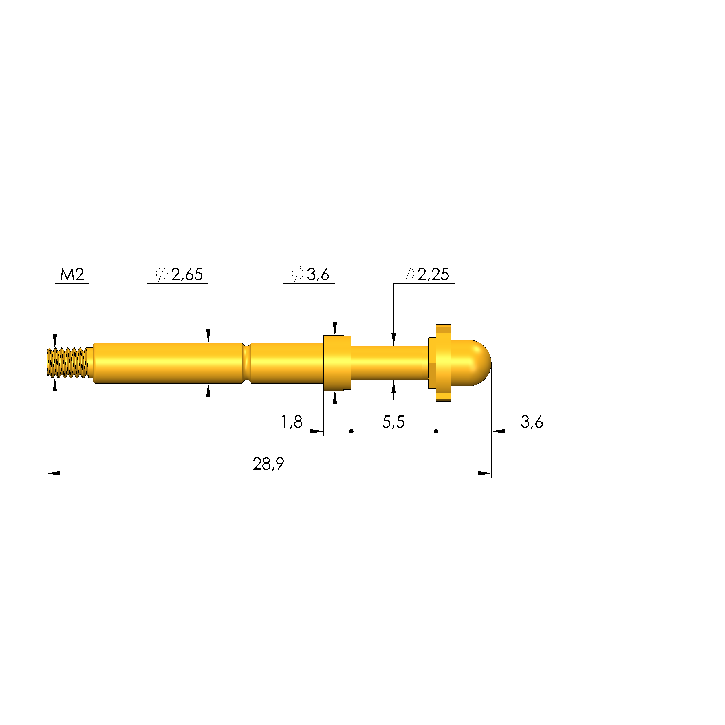 - Zur optimalen Kontaktierung sind unterschiedliche Kopfformen in verschiedenen Kopf-Ø, Teller-Ø und Pin-Längen verfügbar