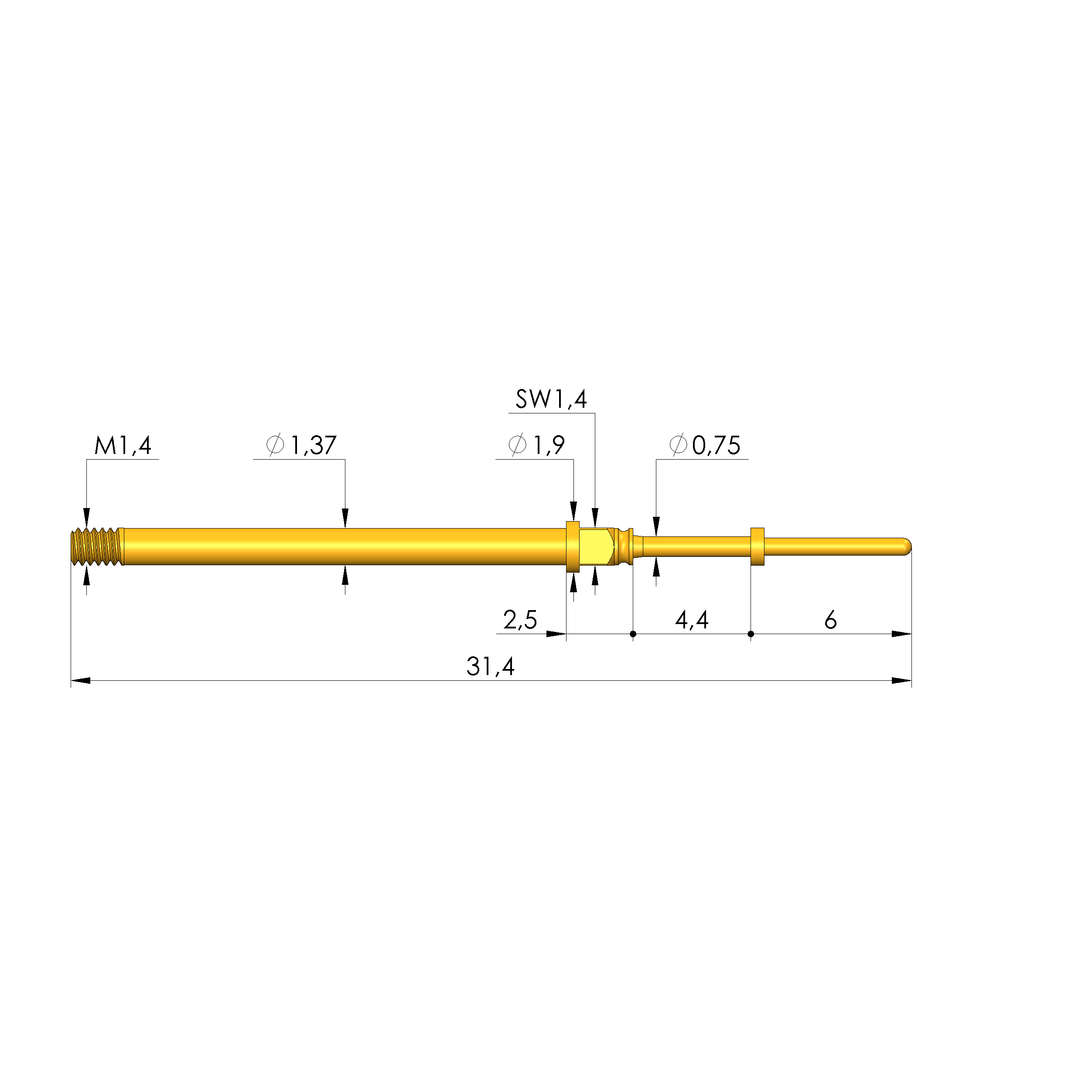 - Gesamtlänge: 31,4 mm