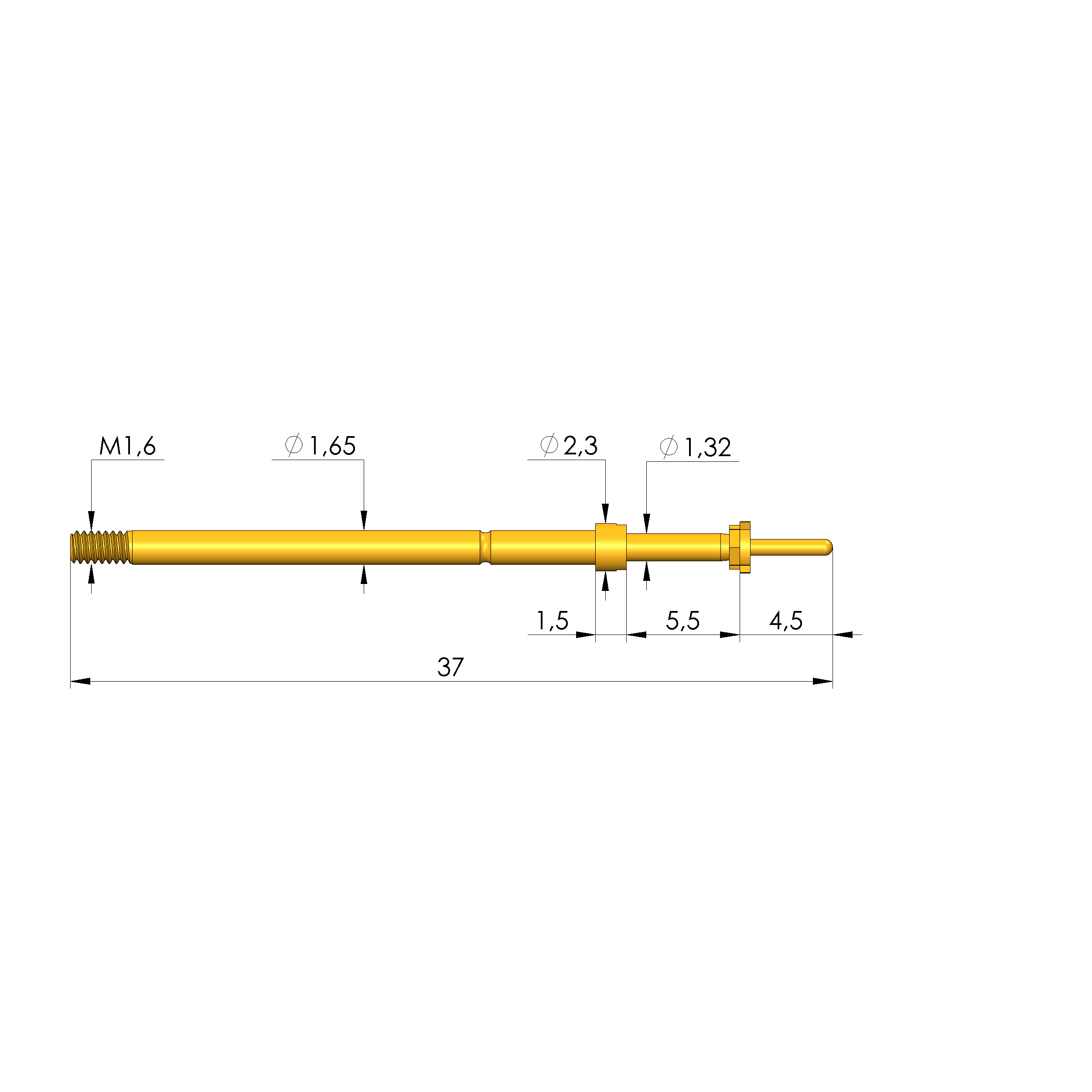 - Gesamtlänge: 37 mm