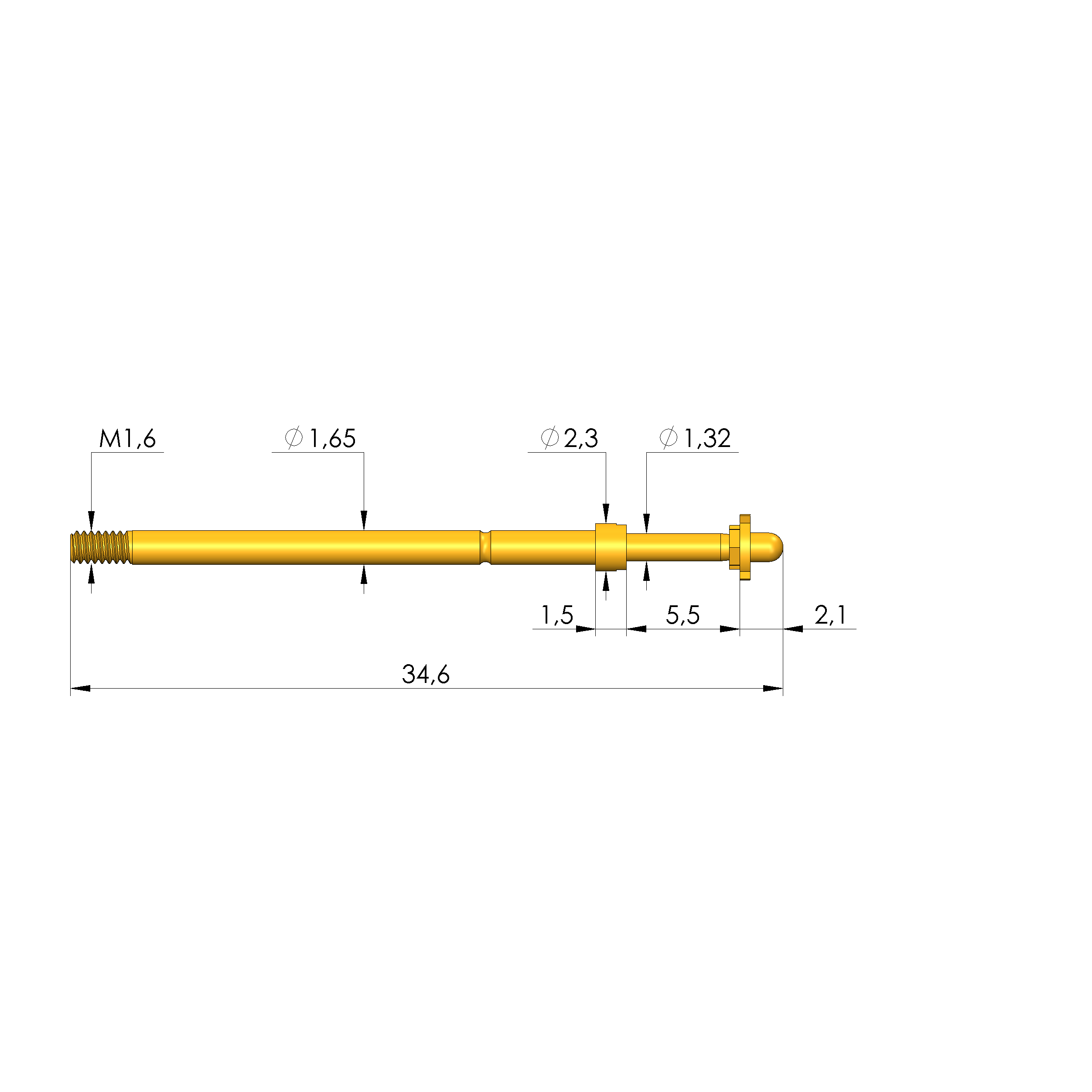 - Gesamtlänge: 34,6 mm