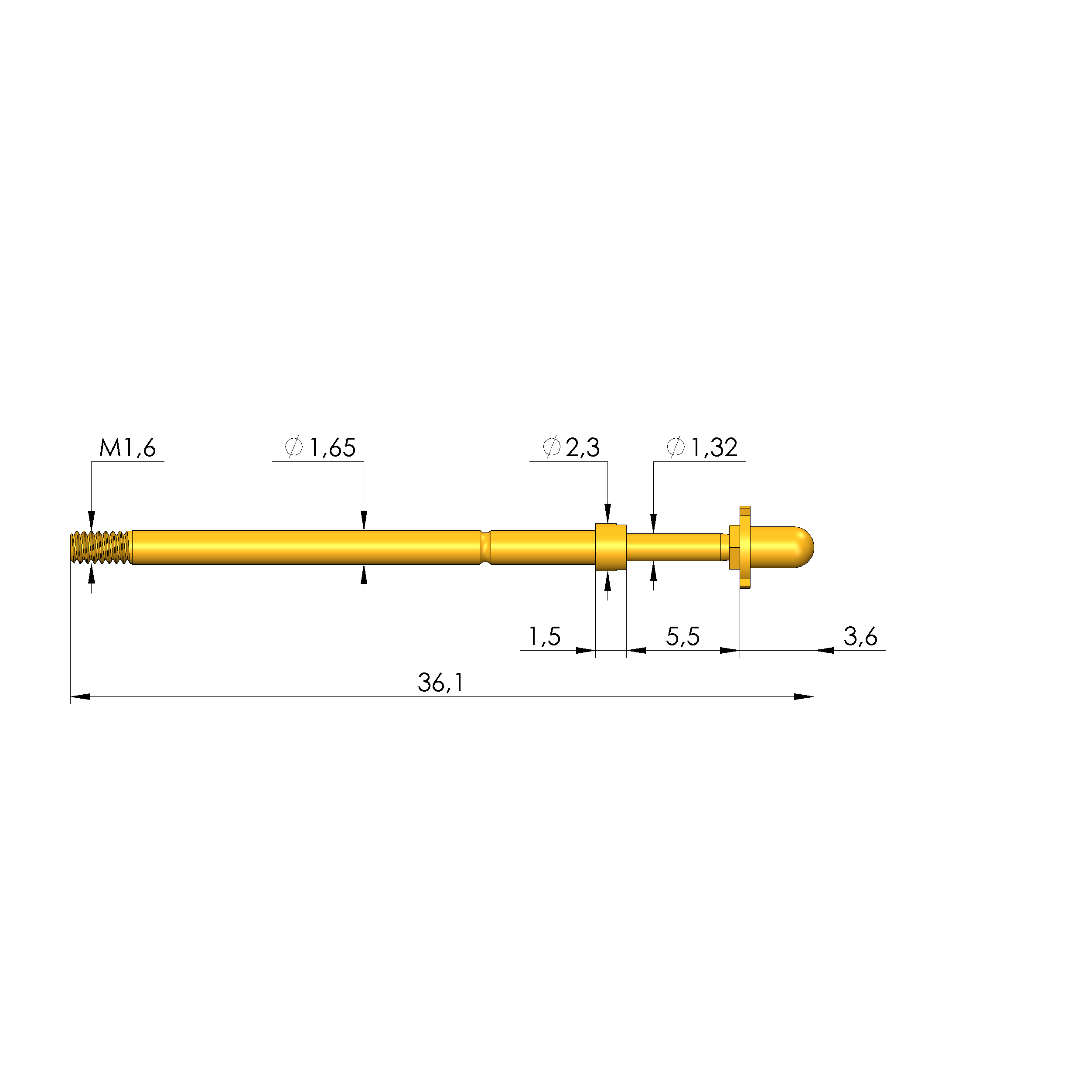 - Zur optimalen Kontaktierung sind unterschiedliche Kopfformen in verschiedenen Kopf-Ø, Teller-Ø und Pin-Längen verfügbar