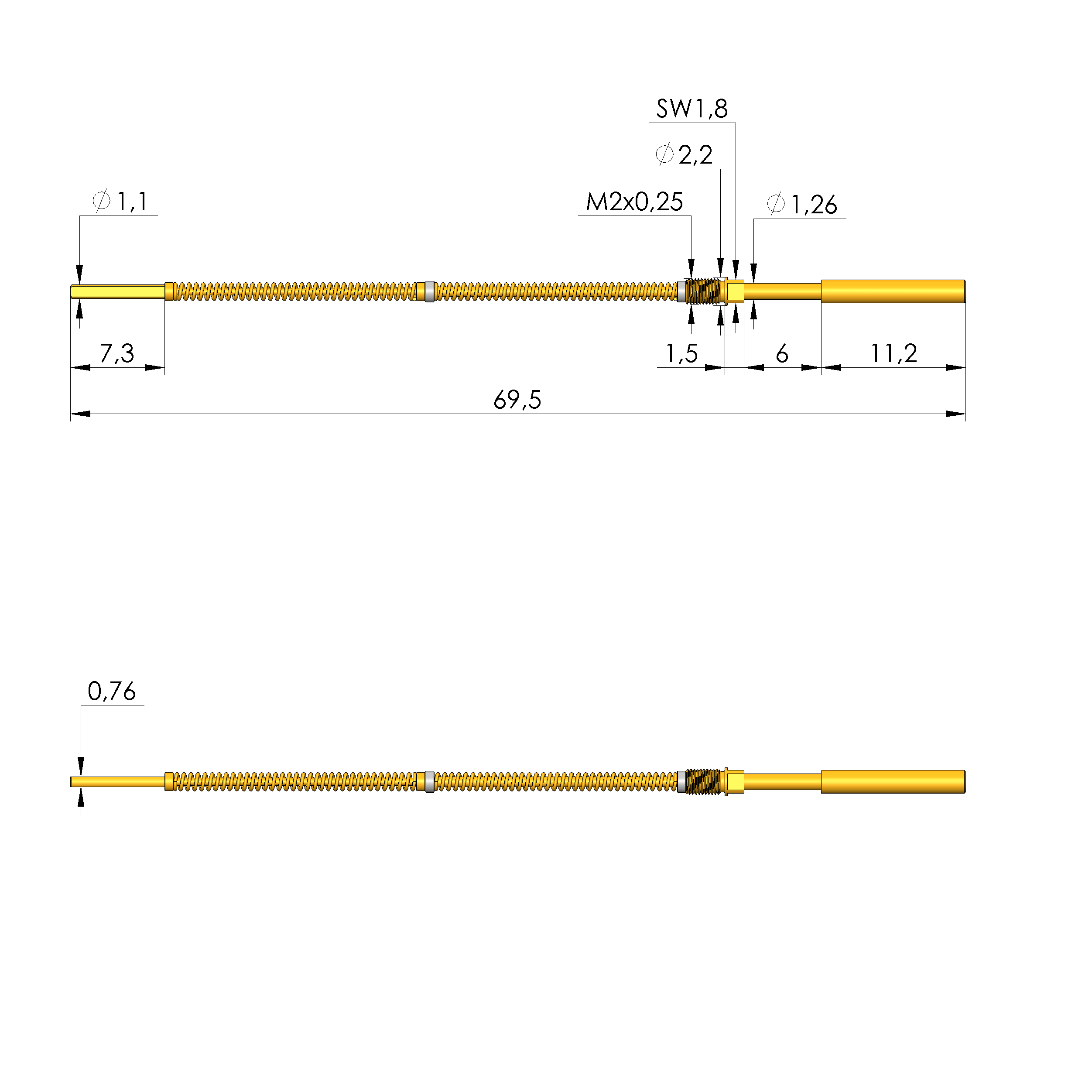 | Durchgehender Kolben: | ø1,1 x 0,77 x 7,3 |