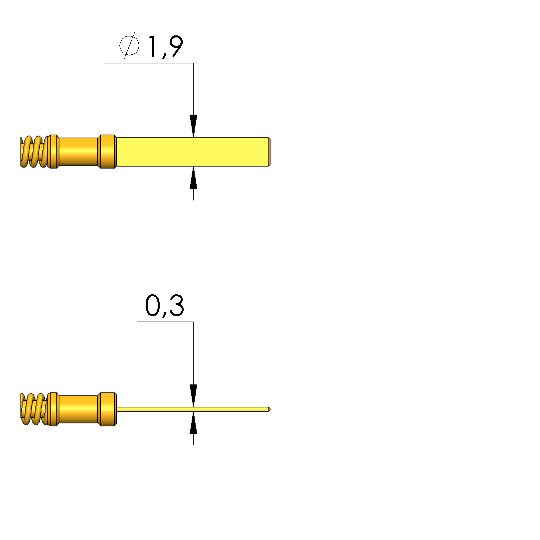 • Durchgehender Kolben: ø0,9 x 0,5 x 7,5