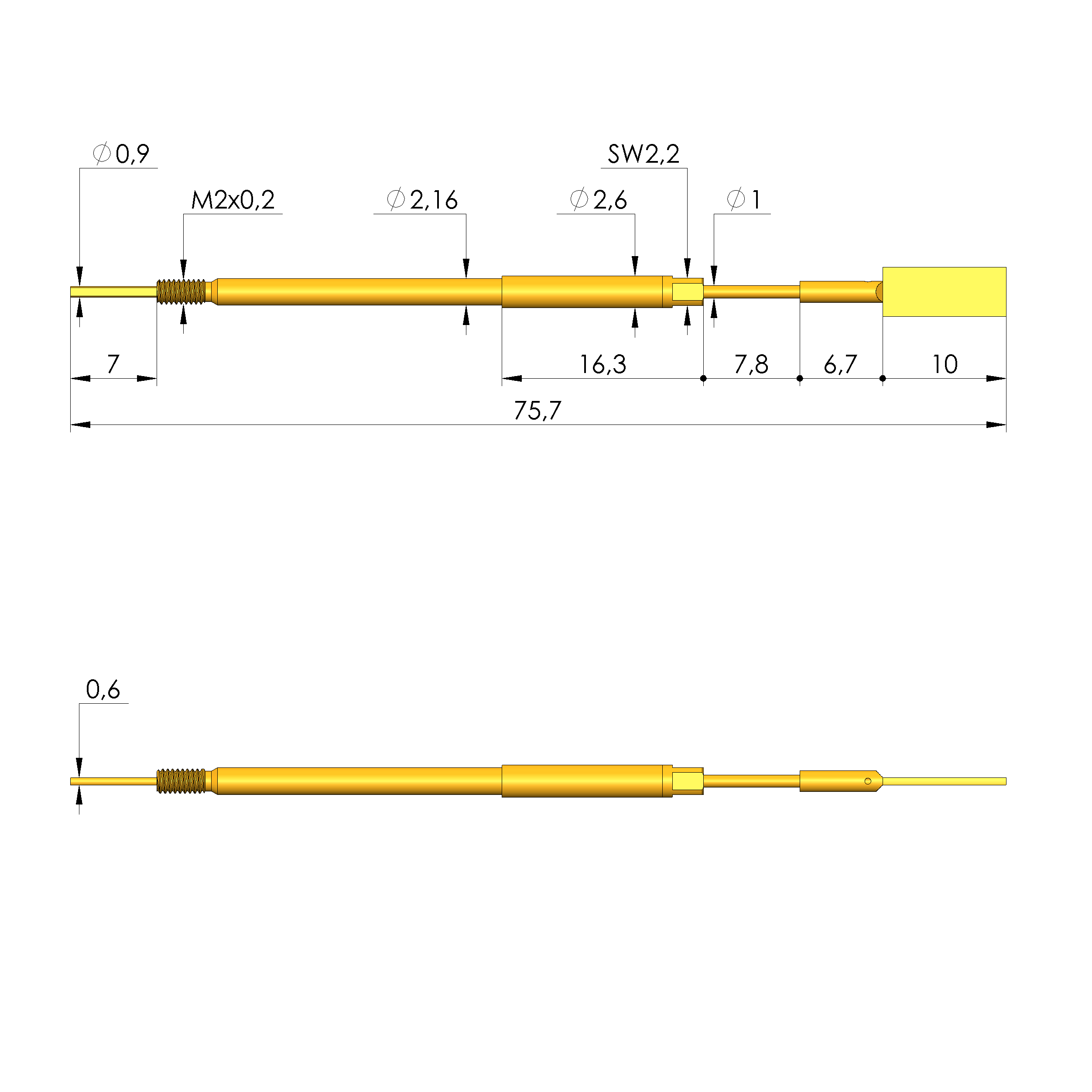| Durchgehender Kolben: | ø0,9 x 0,6 x 7,0 |