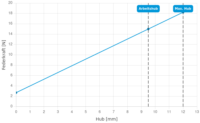 | Federkraft bei Arbeitshub: | 15 N |